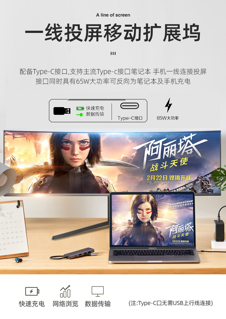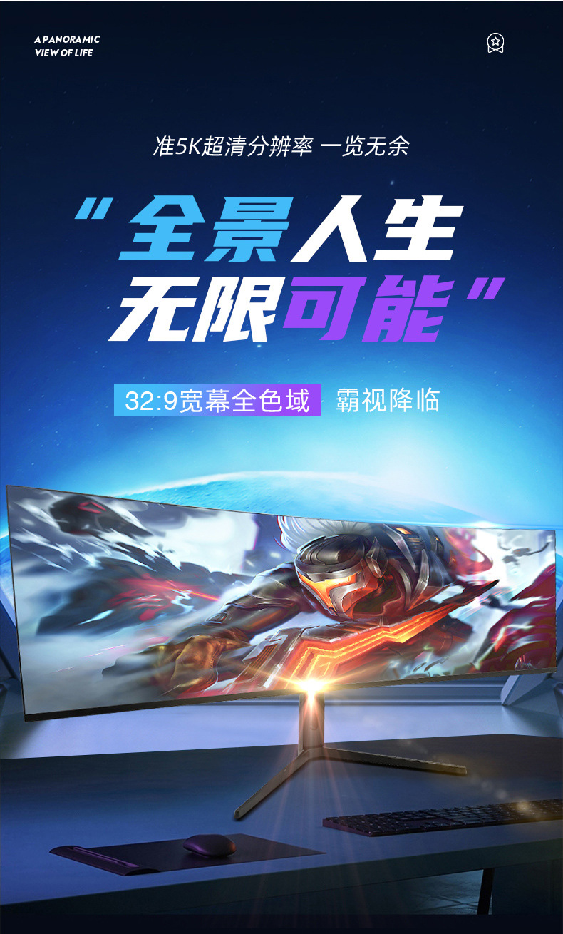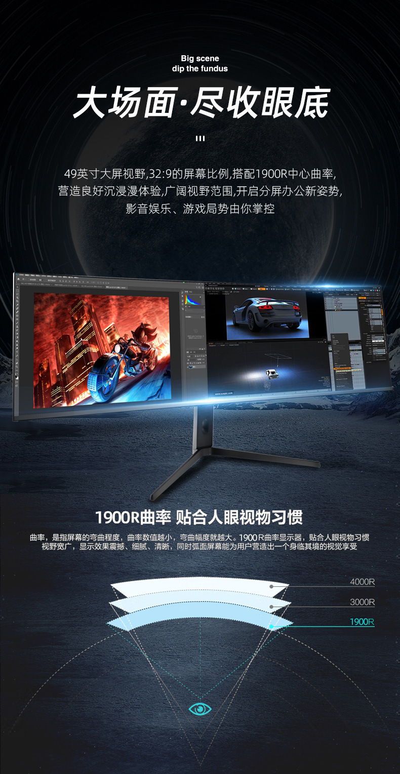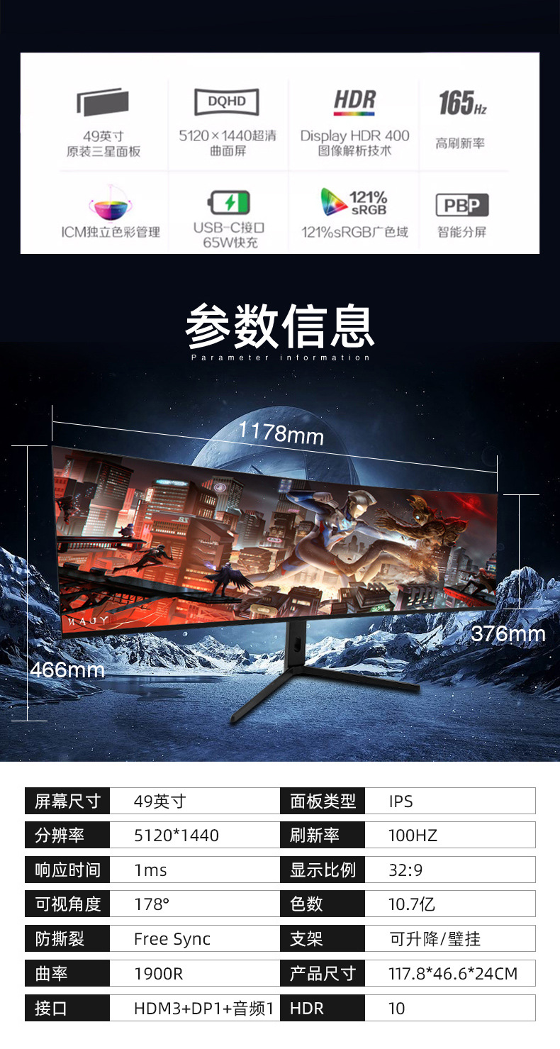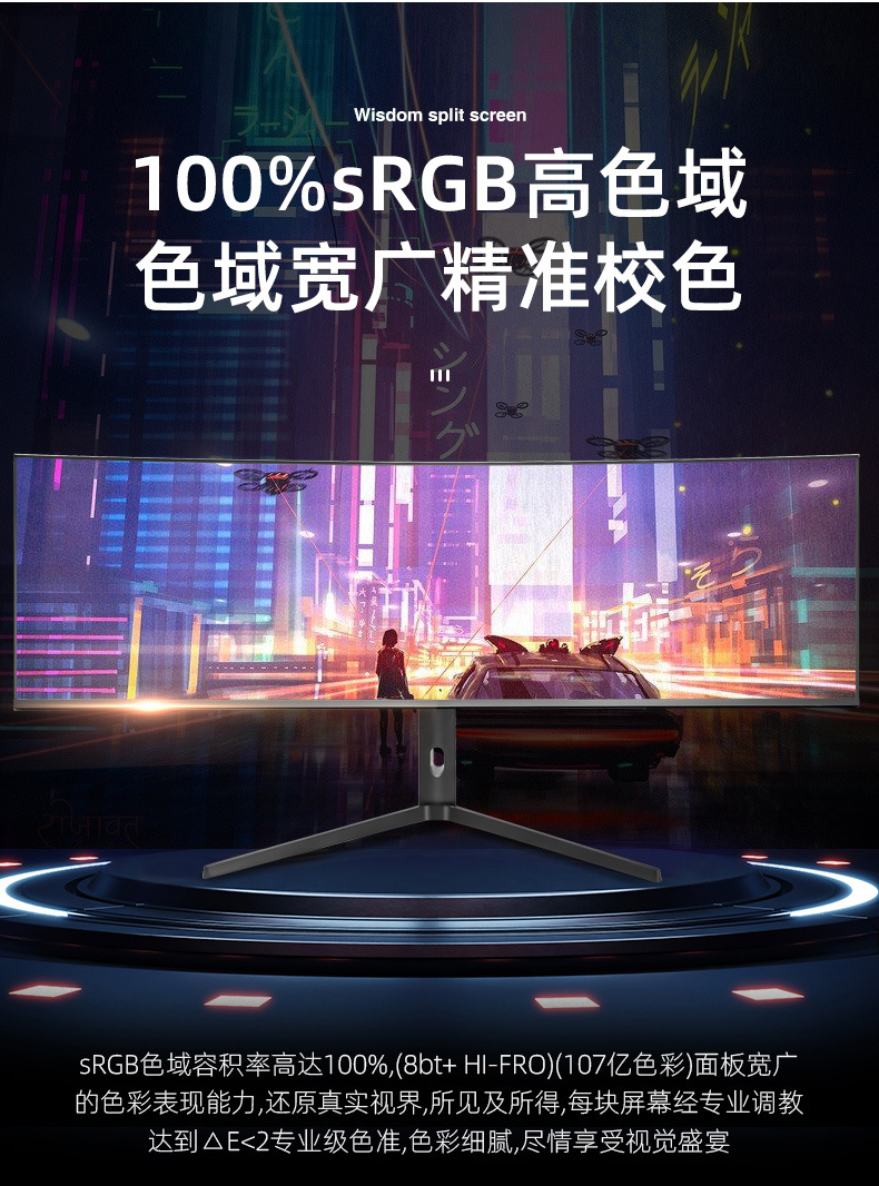 Chơi game 49 inch với màn hình cá Máy tính bề mặt độ phân giải cao 5K Màn hình IPS Màn hình 4K144Hz 32:9