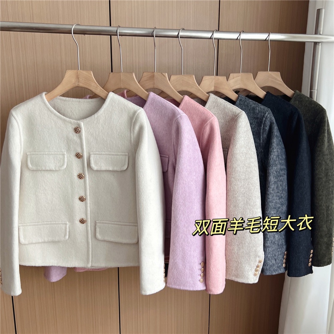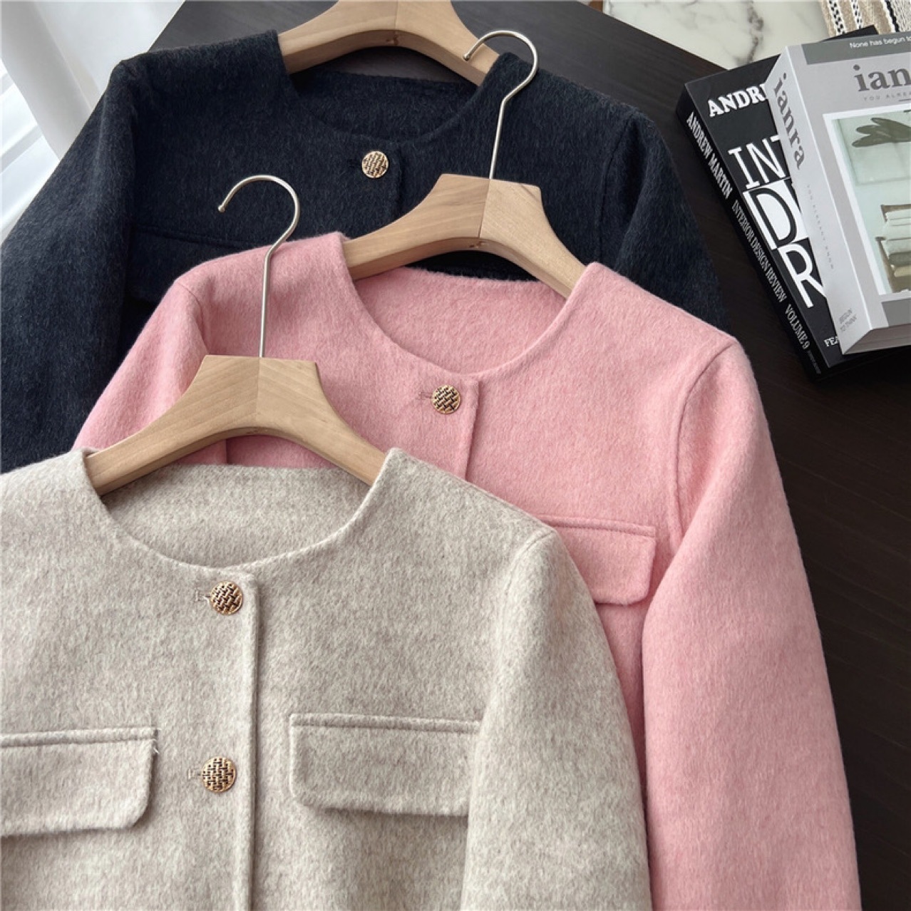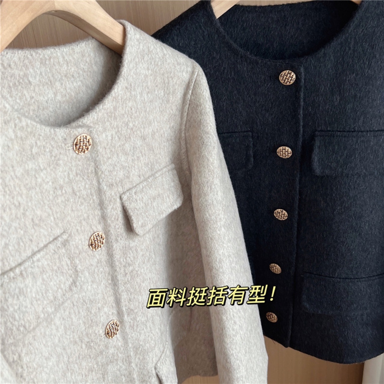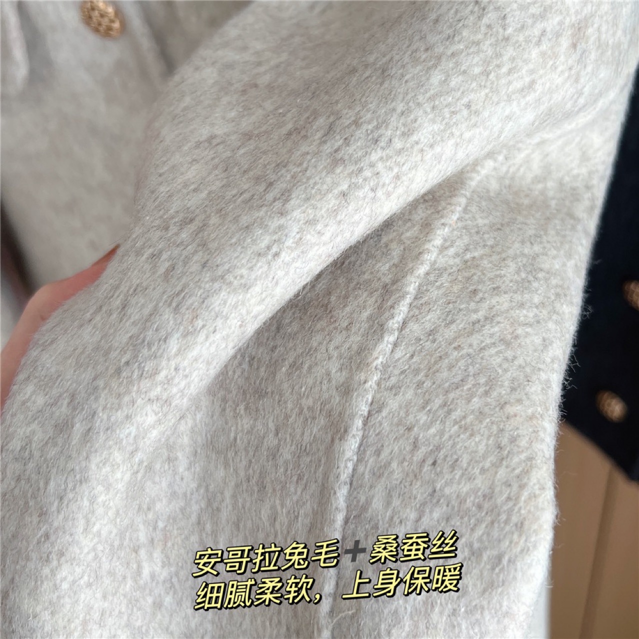 Chống mùa phúc lợi phong cách nước ngoài lông thỏ Angora 2 mặt thủ công len gió thơm Áo khoác len nữ thu đông SM0617W