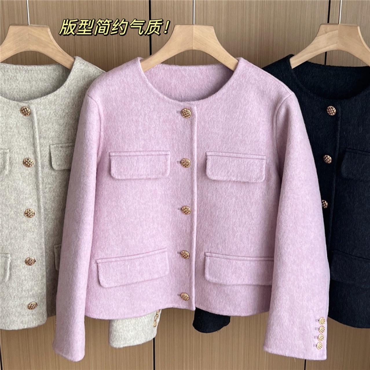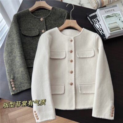 Chống mùa phúc lợi phong cách nước ngoài lông thỏ Angora 2 mặt thủ công len gió thơm Áo khoác len nữ thu đông SM0617W