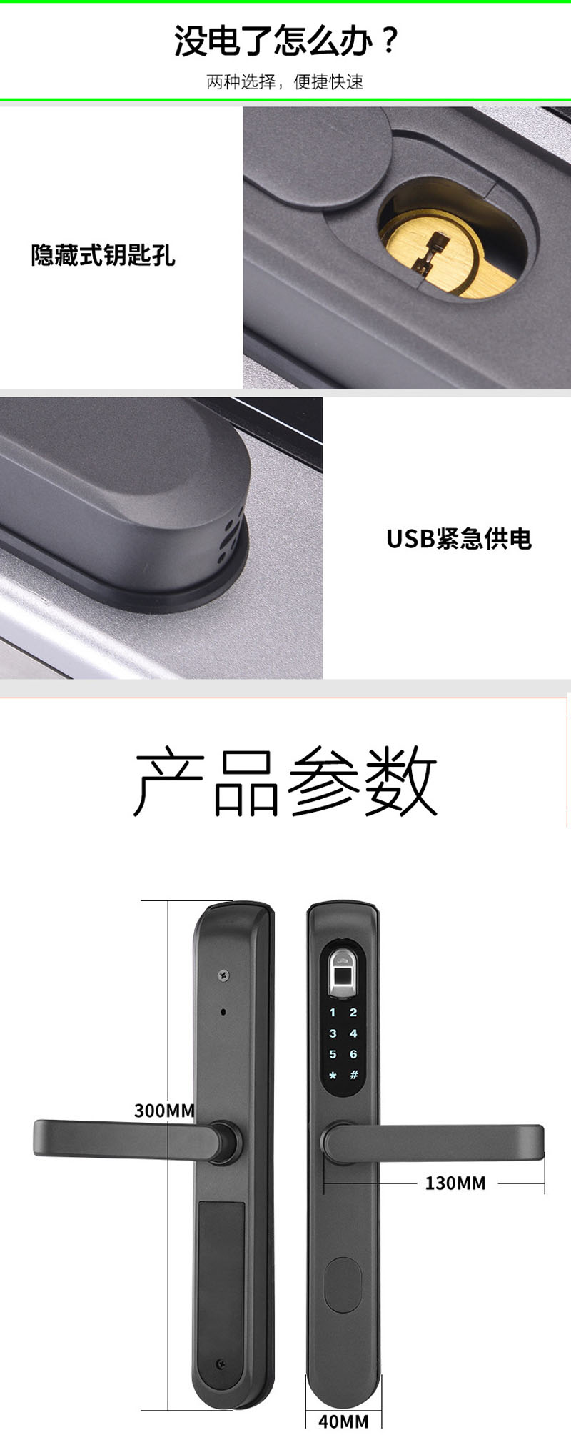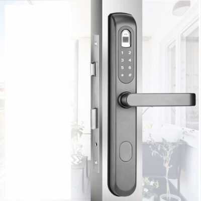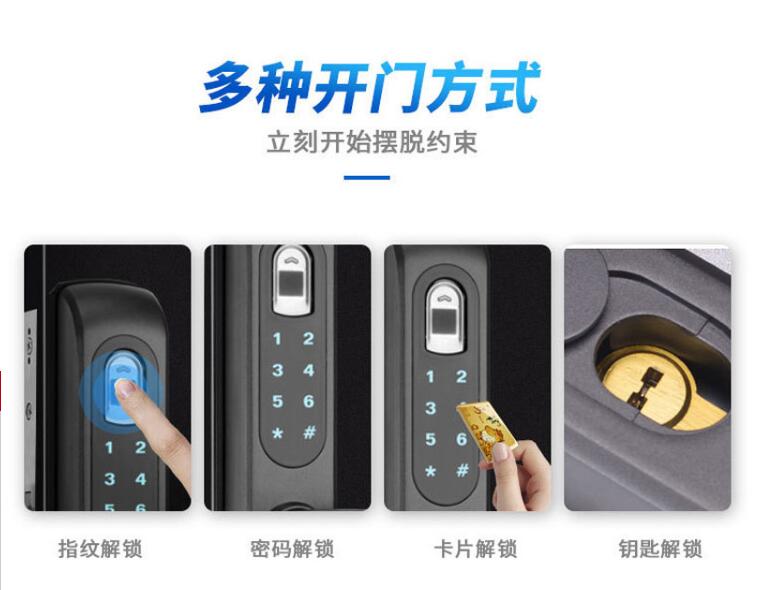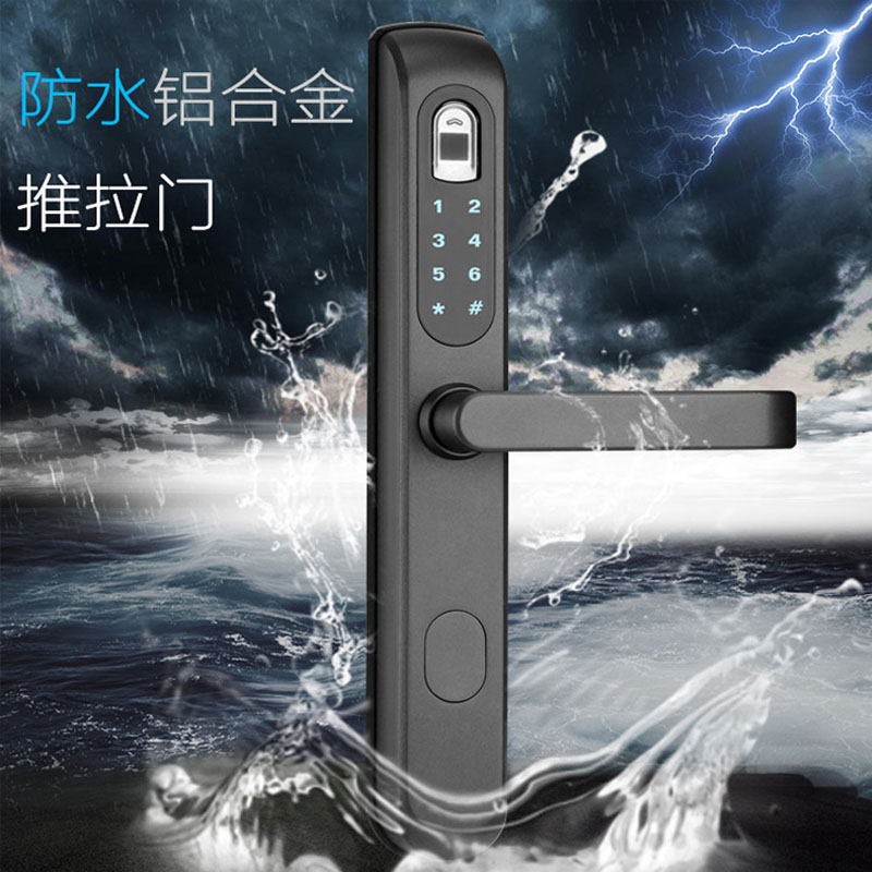 Chống thấm Khóa cửa nhôm khóa vân tay mã khóa quẹt thẻ khóa cửa hông hẹp KFC cửa trượt cửa hợp kim nhôm khóa cửa màu đen