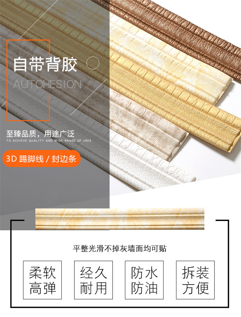 Chống thấm nước tự dính 3D ba chiều viền chân tường nhãn dán TV nền tường viền viền dải bọt vòng eo nhãn dán trang trí