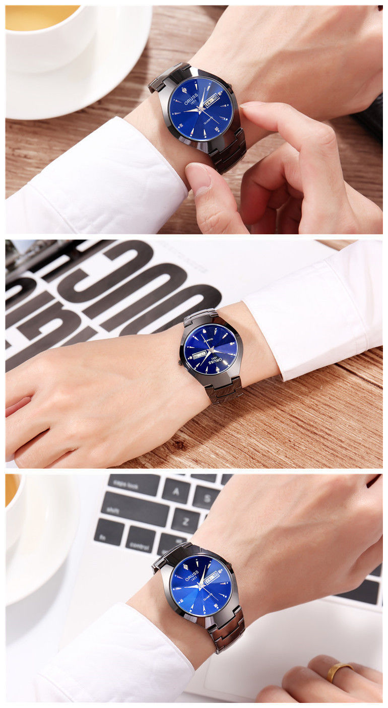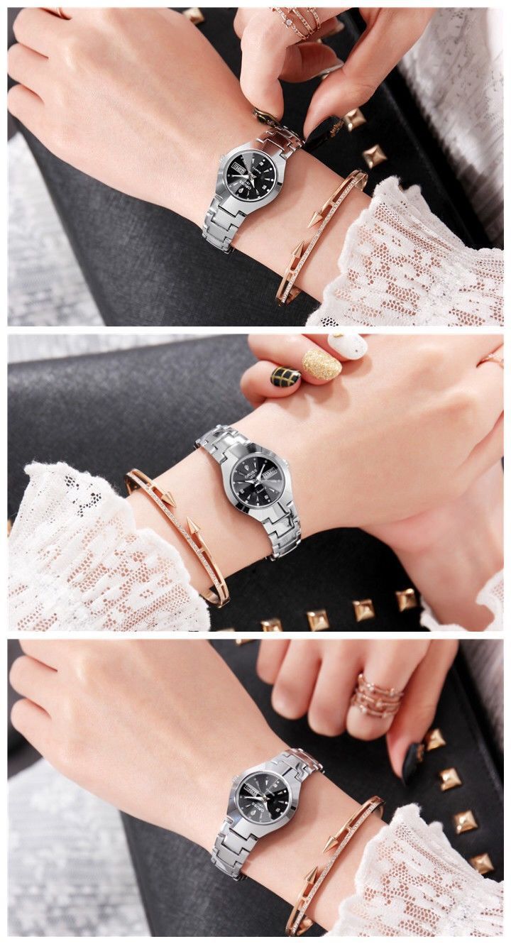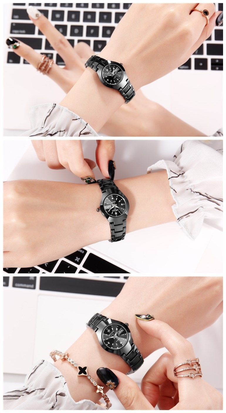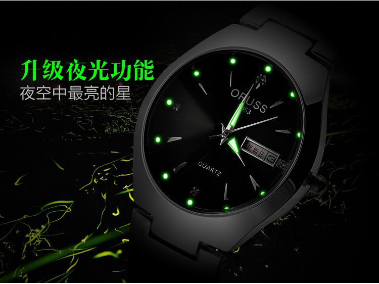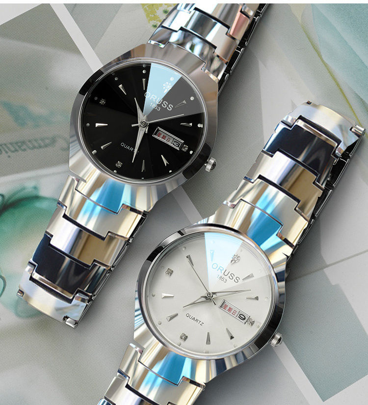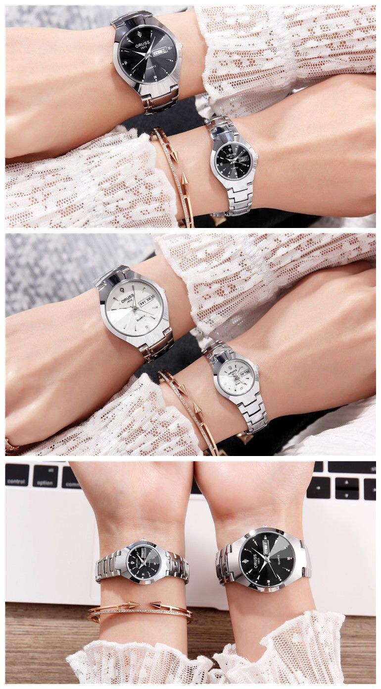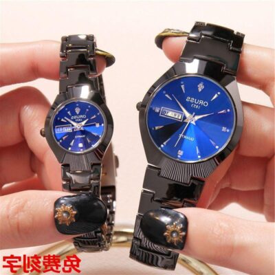 Chữ dạ quang đồng hồ cặp đôi mô hình một đối một nam và nữ dây thép không thấm nước đồng hồ nam lịch tuần đồng hồ thạch anh