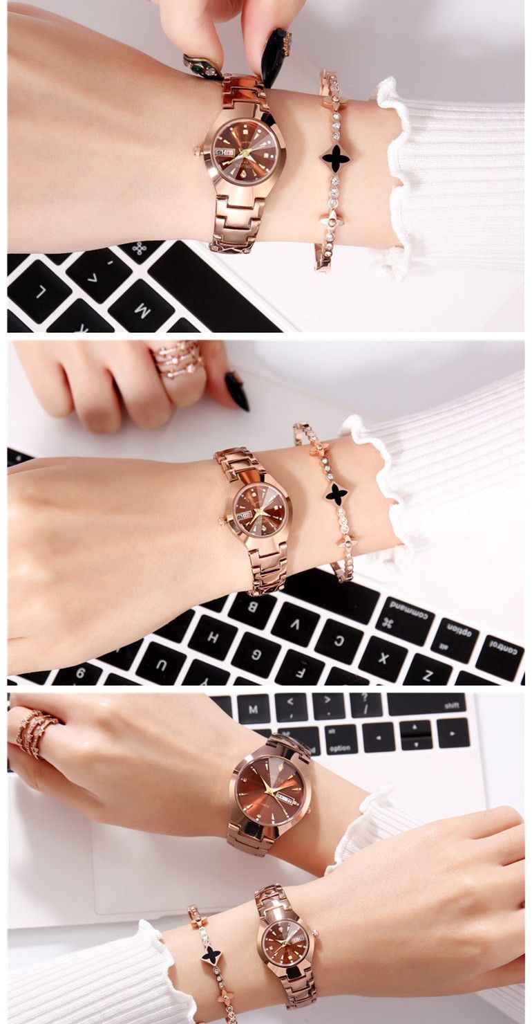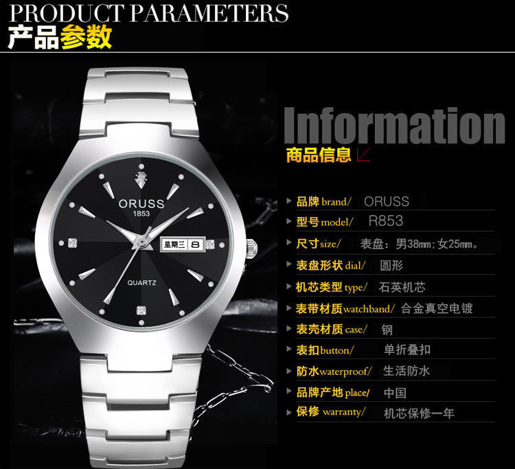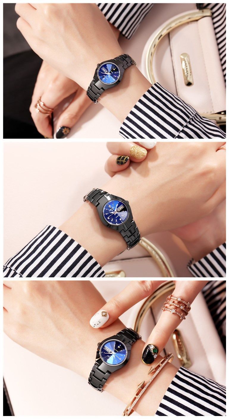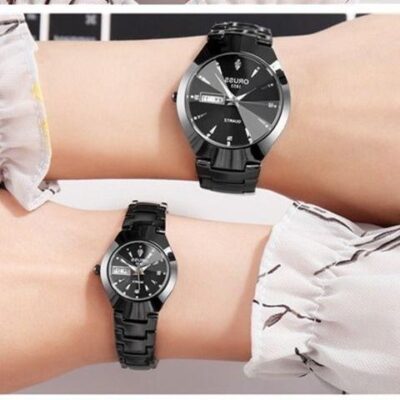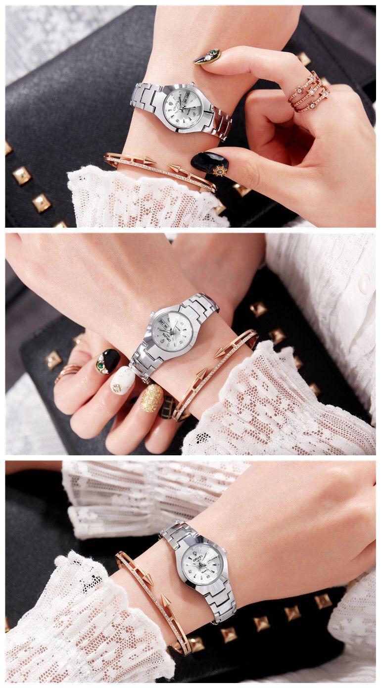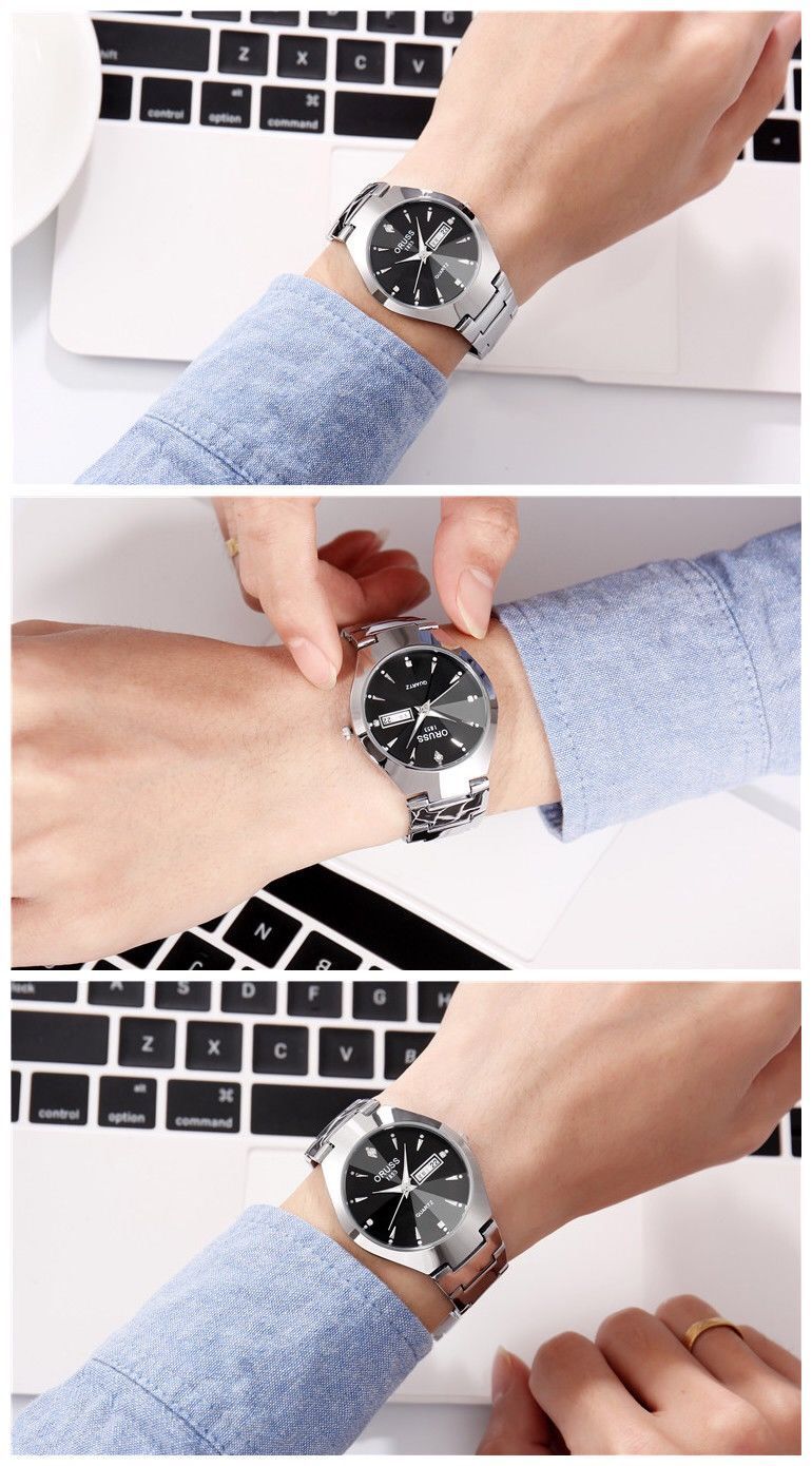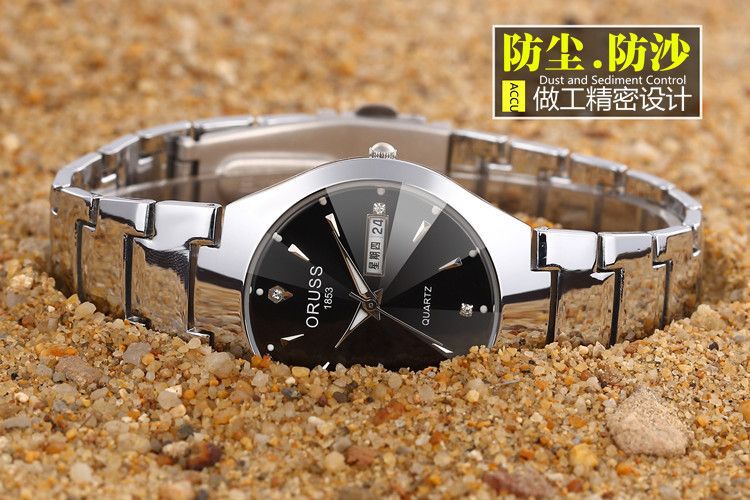 Chữ dạ quang đồng hồ cặp đôi mô hình một đối một nam và nữ dây thép không thấm nước đồng hồ nam lịch tuần đồng hồ thạch anh