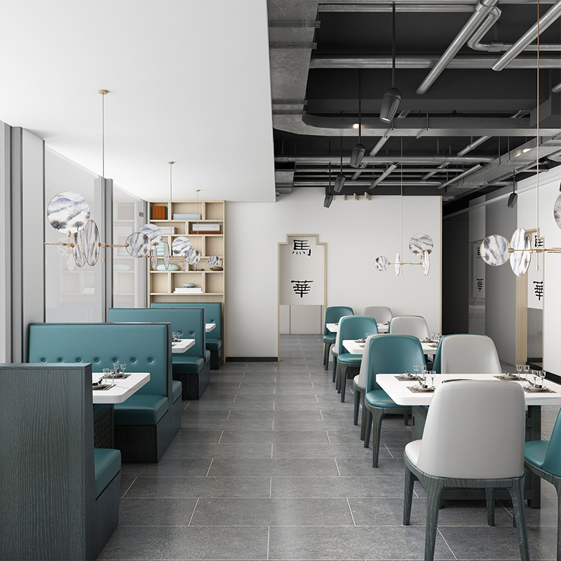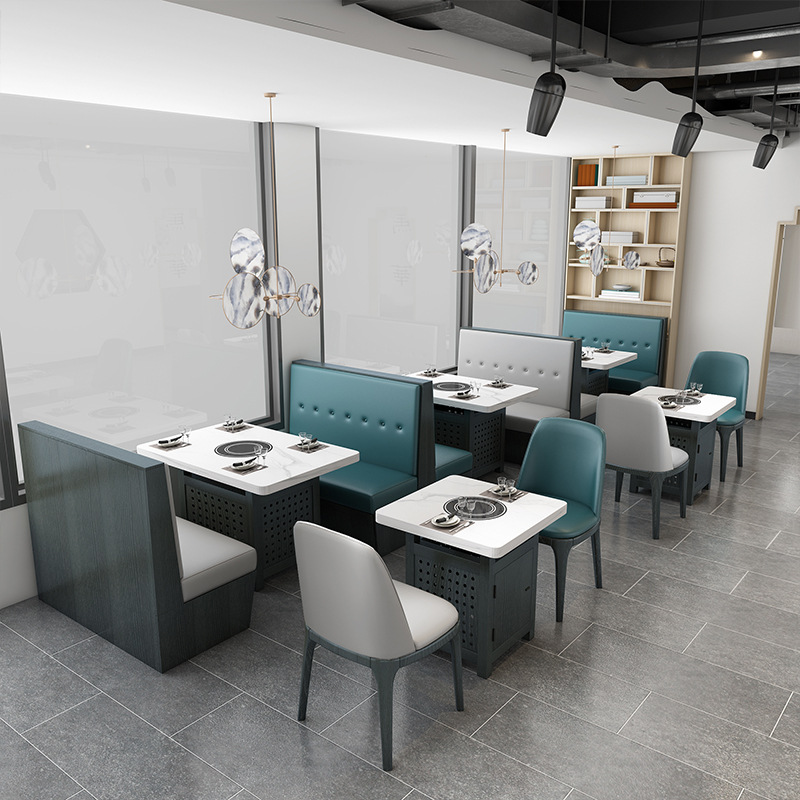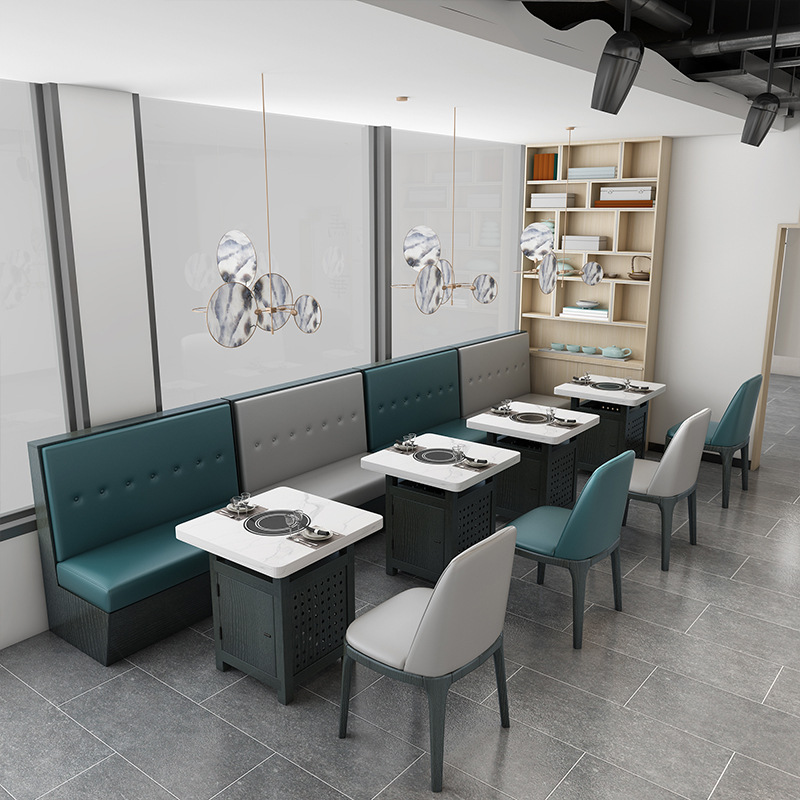 Chủ đề bàn lẩu thương mại bếp cảm ứng không khói đá cẩm thạch kebab bàn bán nguyệt hình chữ U ghế thẻ ghế sofa bàn ghế