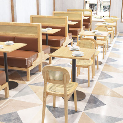 Chủ đề nhà hàng phương tây gỗ rắn tường mây thẻ ghế sofa bàn ăn và ghế chuỗi kết hợp nhà hàng khách sạn đồ nội thất phòng ăn