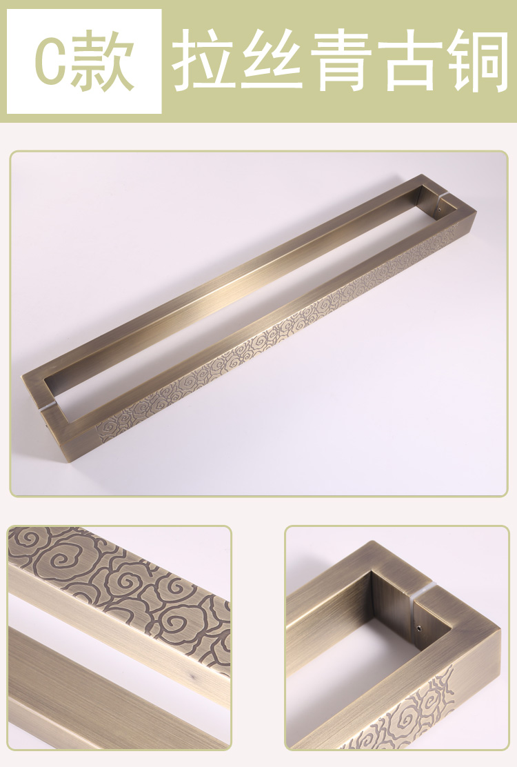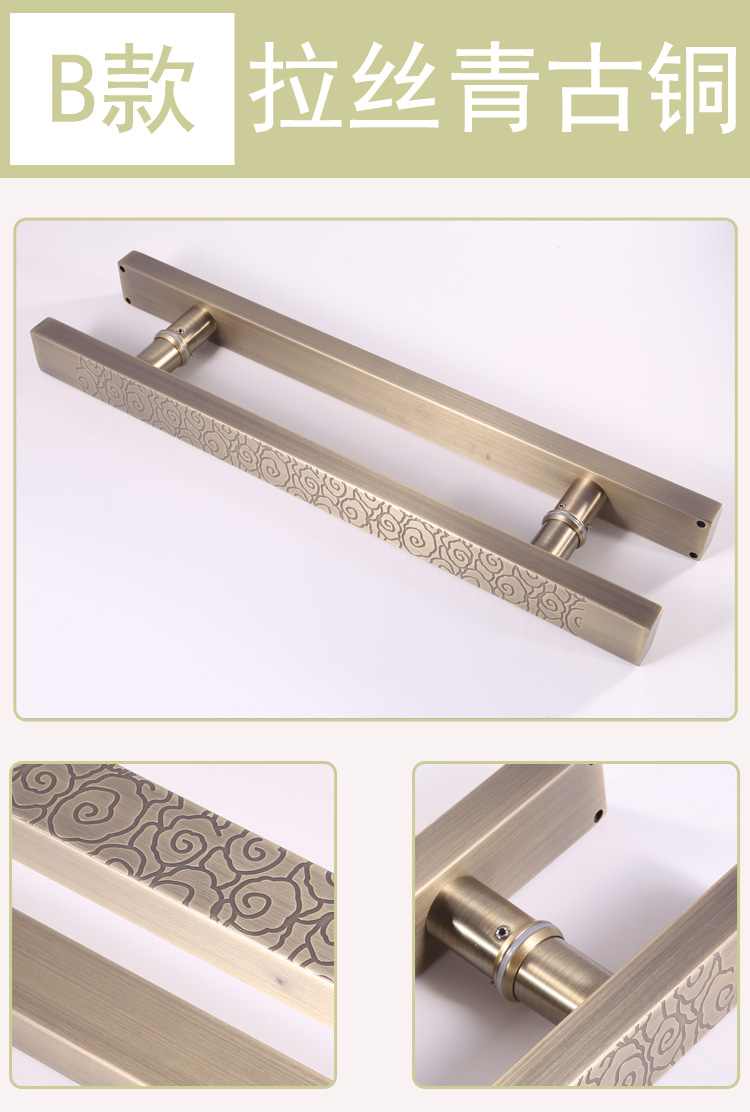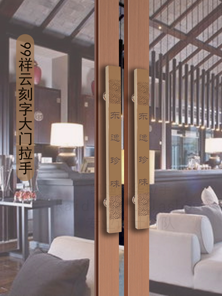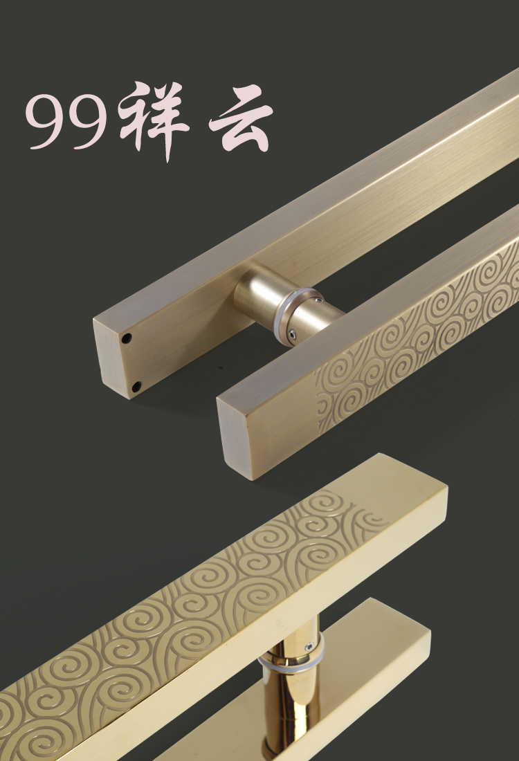 Chữ Trung Quốc dày cửa kính bằng thép không gỉ tay nắm vàng bằng đồng hộp mây tốt lành cửa gỗ tay nắm màu đen