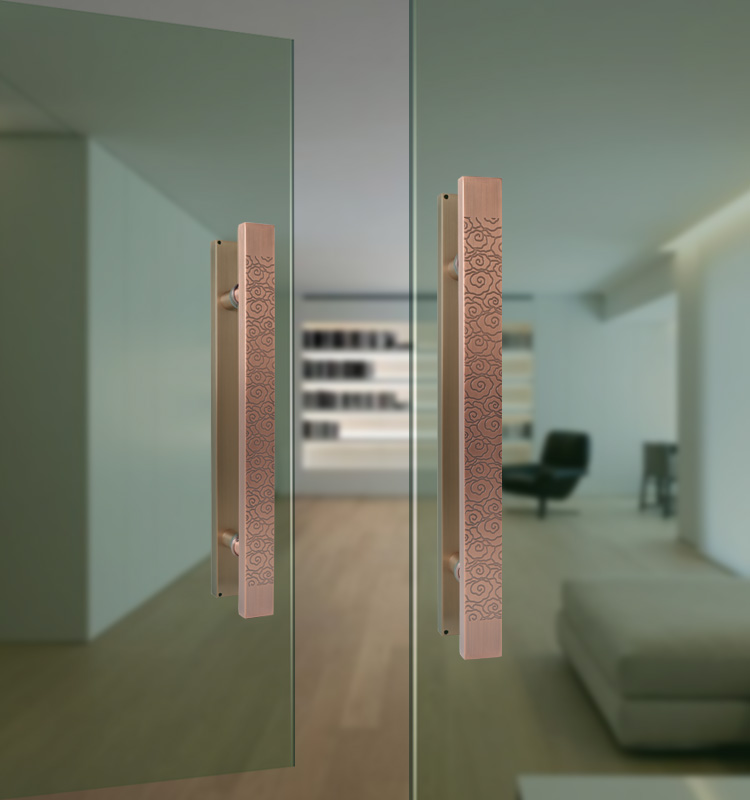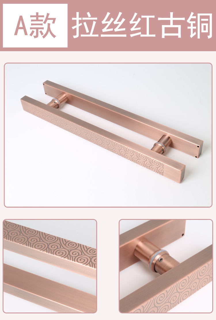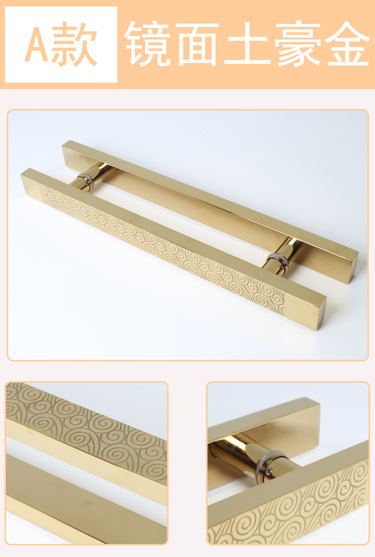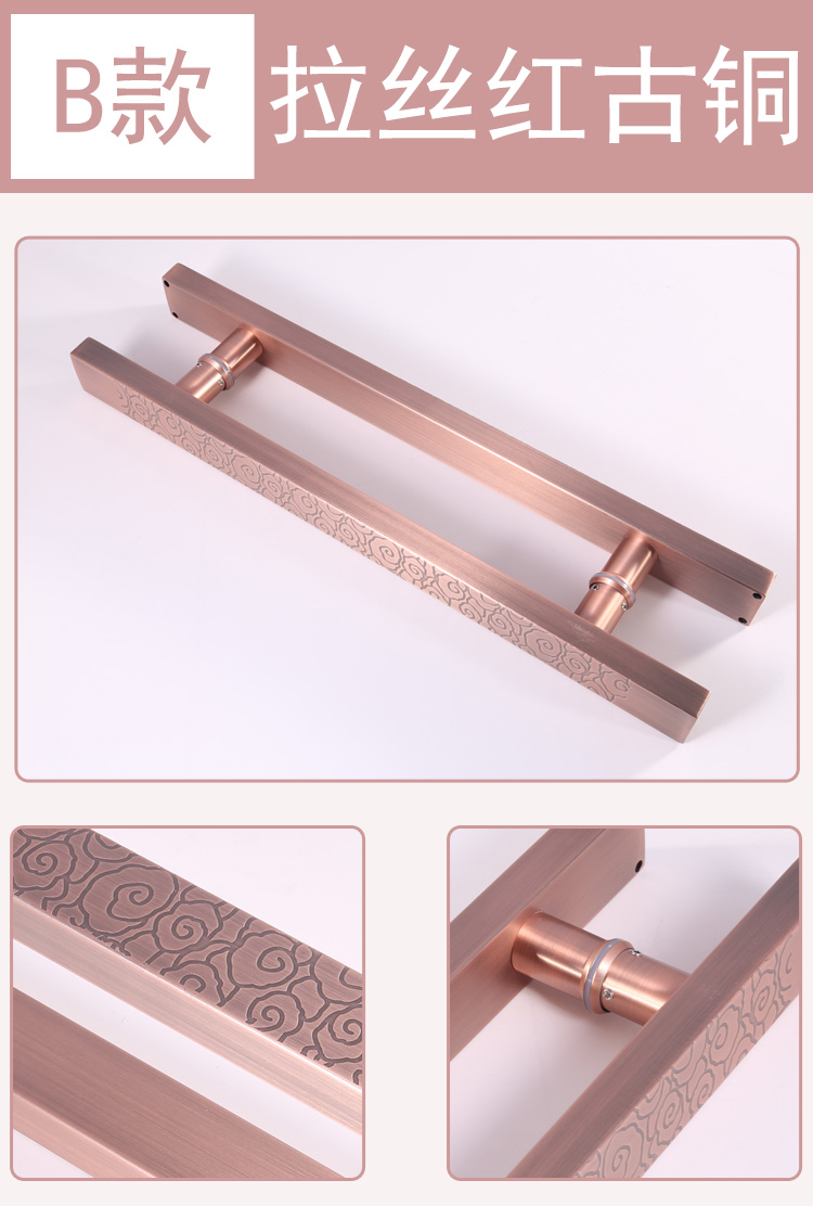 Chữ Trung Quốc dày cửa kính bằng thép không gỉ tay nắm vàng bằng đồng hộp mây tốt lành cửa gỗ tay nắm màu đen