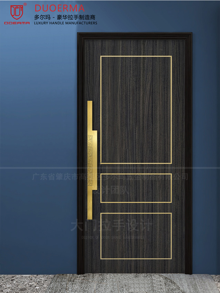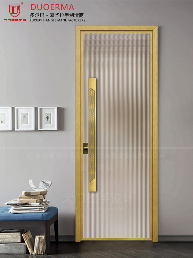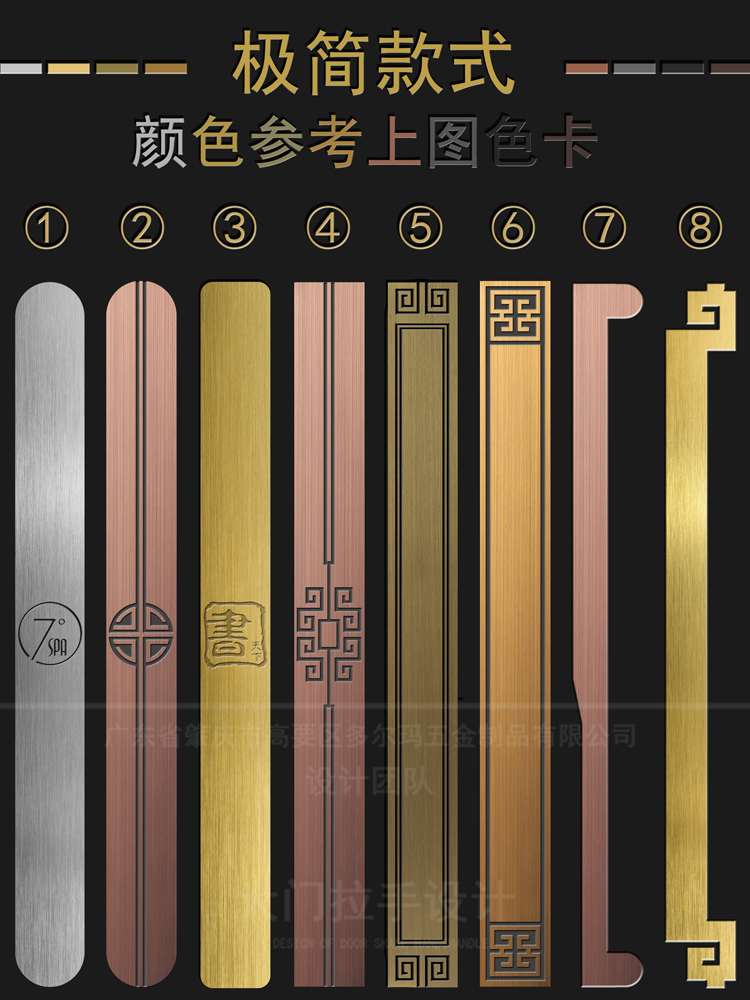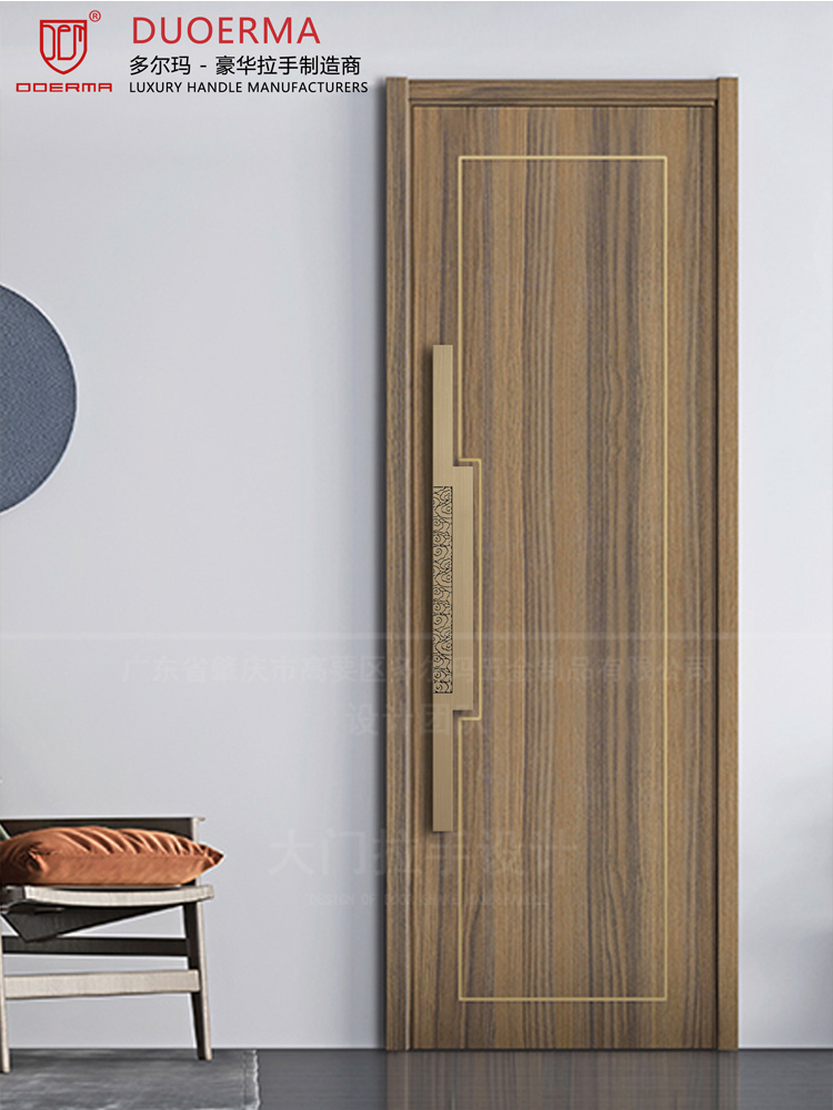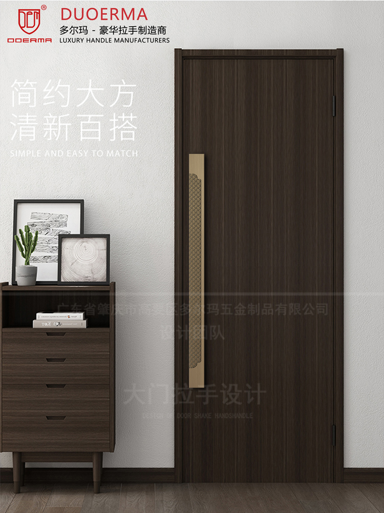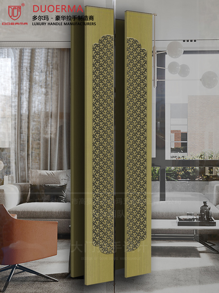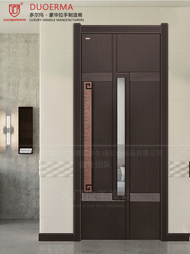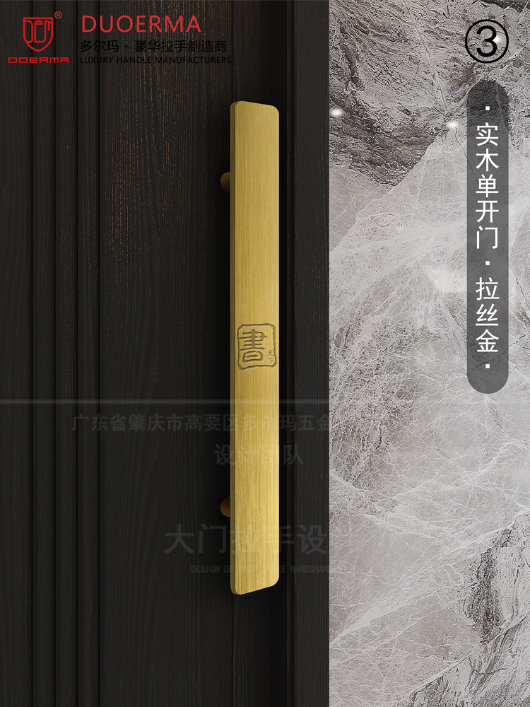 Chữ Trung Quốc logo Tay nắm cửa kính khách sạn phòng hội nghị phòng riêng cửa gỗ màu đen tối giản Tay nắm cửa bằng đồng