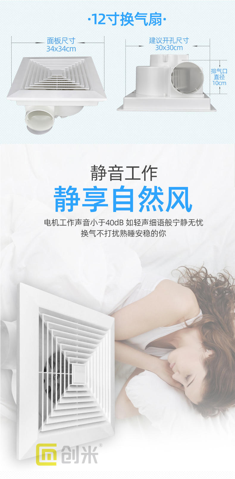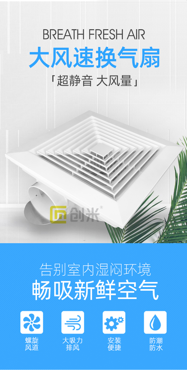 Chuangmi tích hợp quạt thông gió âm trần nhà bếp phòng tắm quạt hút âm trần loại quạt hút gió mạnh mẽ