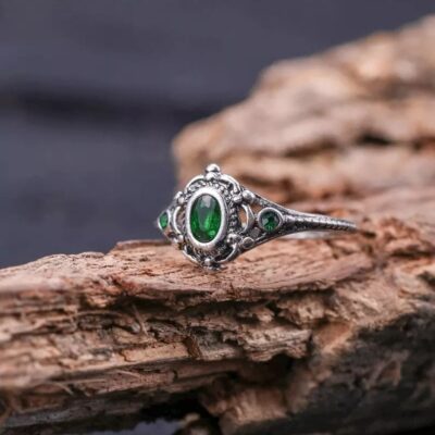 Chúc AliExpress Retro Chrysoprase Nhẫn Nam Nữ Xanh Đá Quý Nhẫn Nhẫn Bán Buôn