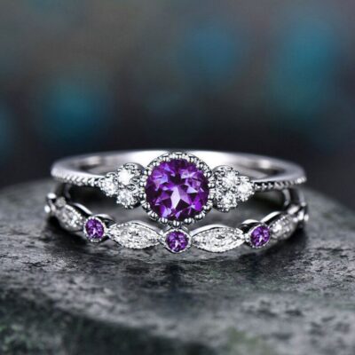 Chúc nhẫn mới thời trang nhẫn nữ zircon hai mảnh vi bộ trang sức nhẫn ngọc lục bảo