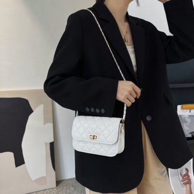 Chuỗi hình thoi xuyên biên giới màu trơn túi vuông nhỏ xu hướng mới 2023 túi đeo vai thời trang đơn giản phong cách phương Tây túi messenger