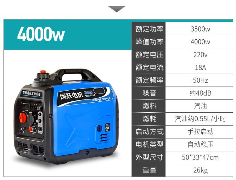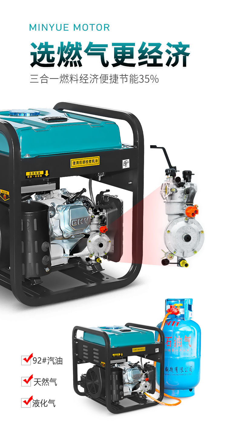 Chuyển đổi tần số không ồn Máy phát điện nhỏ chạy xăng 220V 2/3KW xách tay hộ gia đình ngoài trời 8/10/12 kW