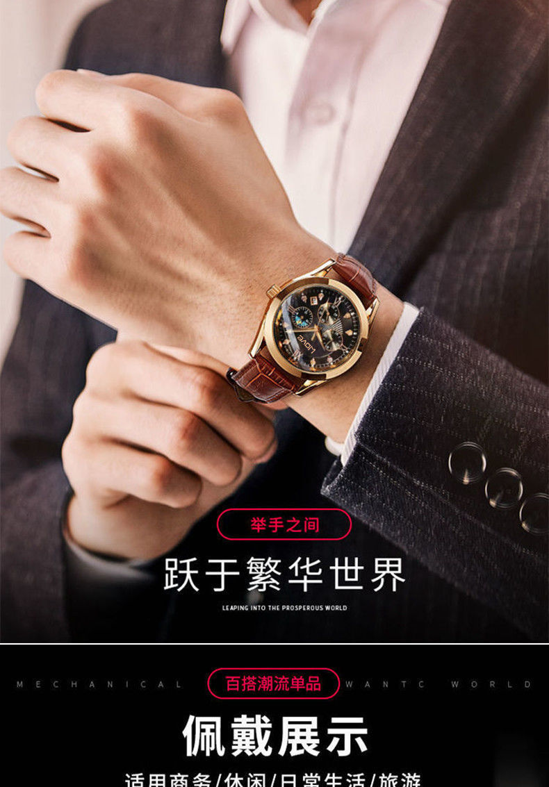 Chuyên sỉ đồng hồ tự động nam công sở đẹp trai cao cấp dạ quang chống nước xu hướng Hàn Quốc thông minh màu đen công nghệ