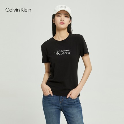 CK Jeans22 mùa xuân mới của phụ nữ thời trang giản dị cổ tròn in LOGO Áo phông ngắn tay J219176