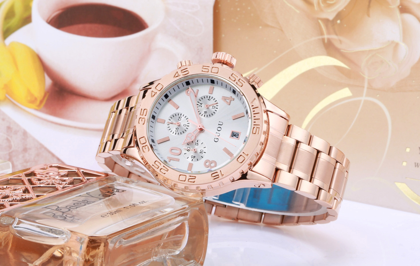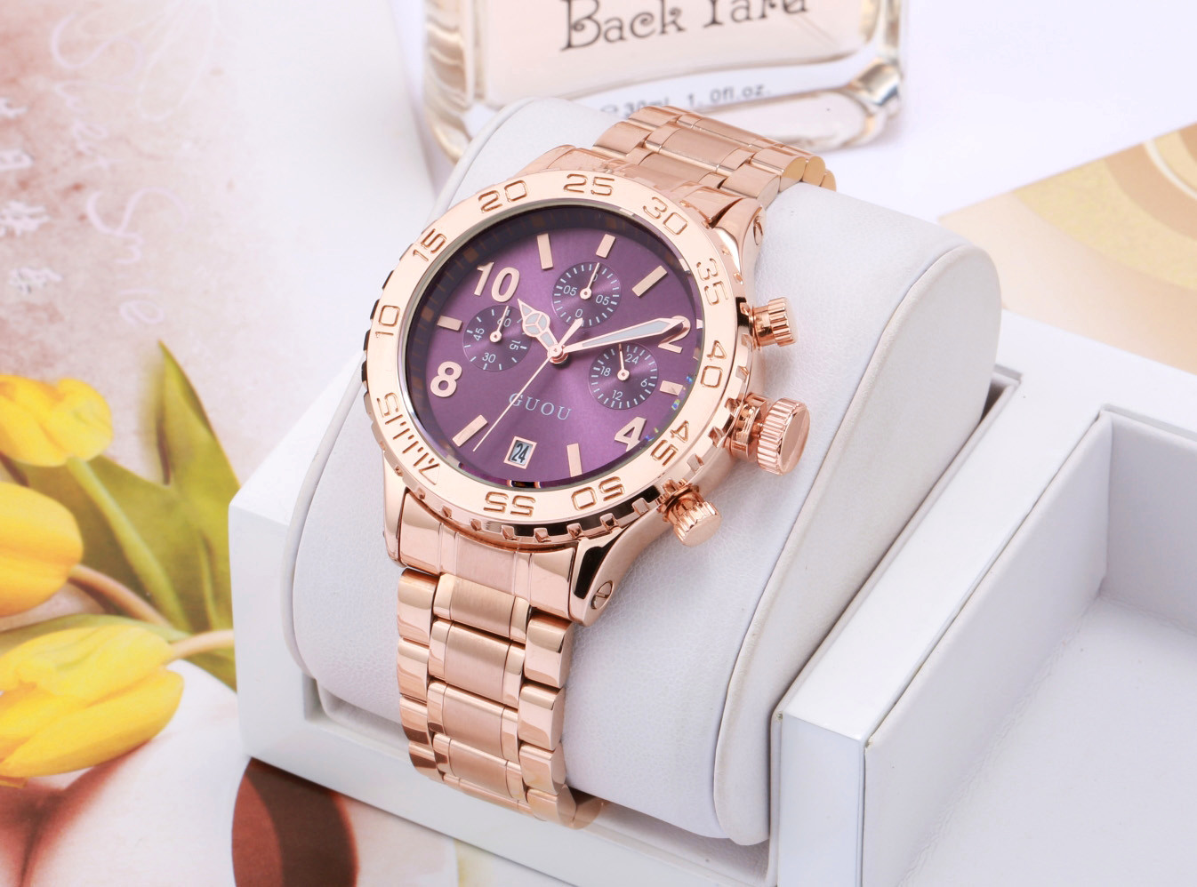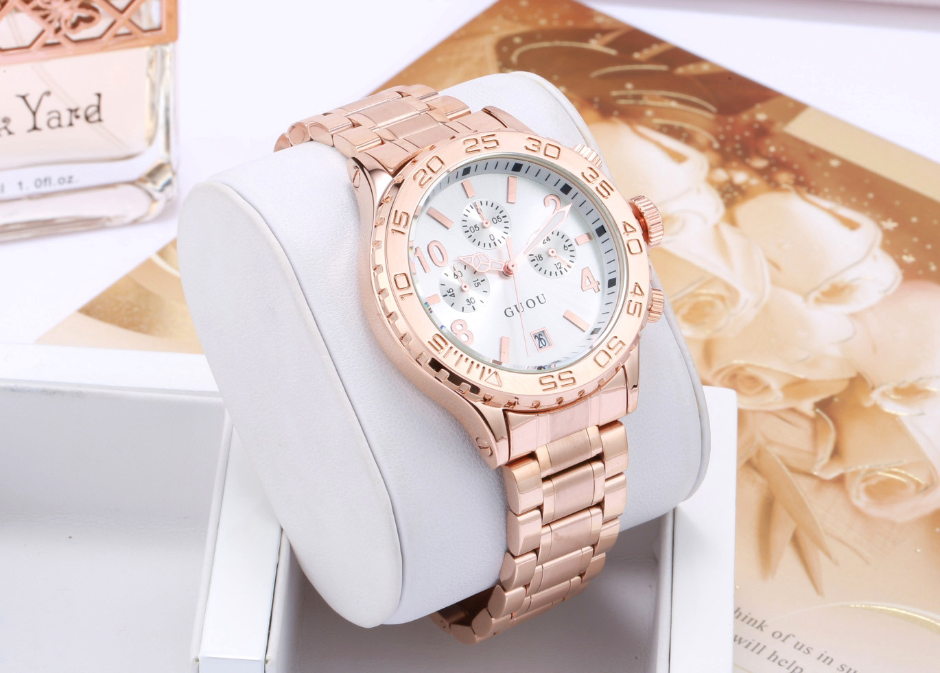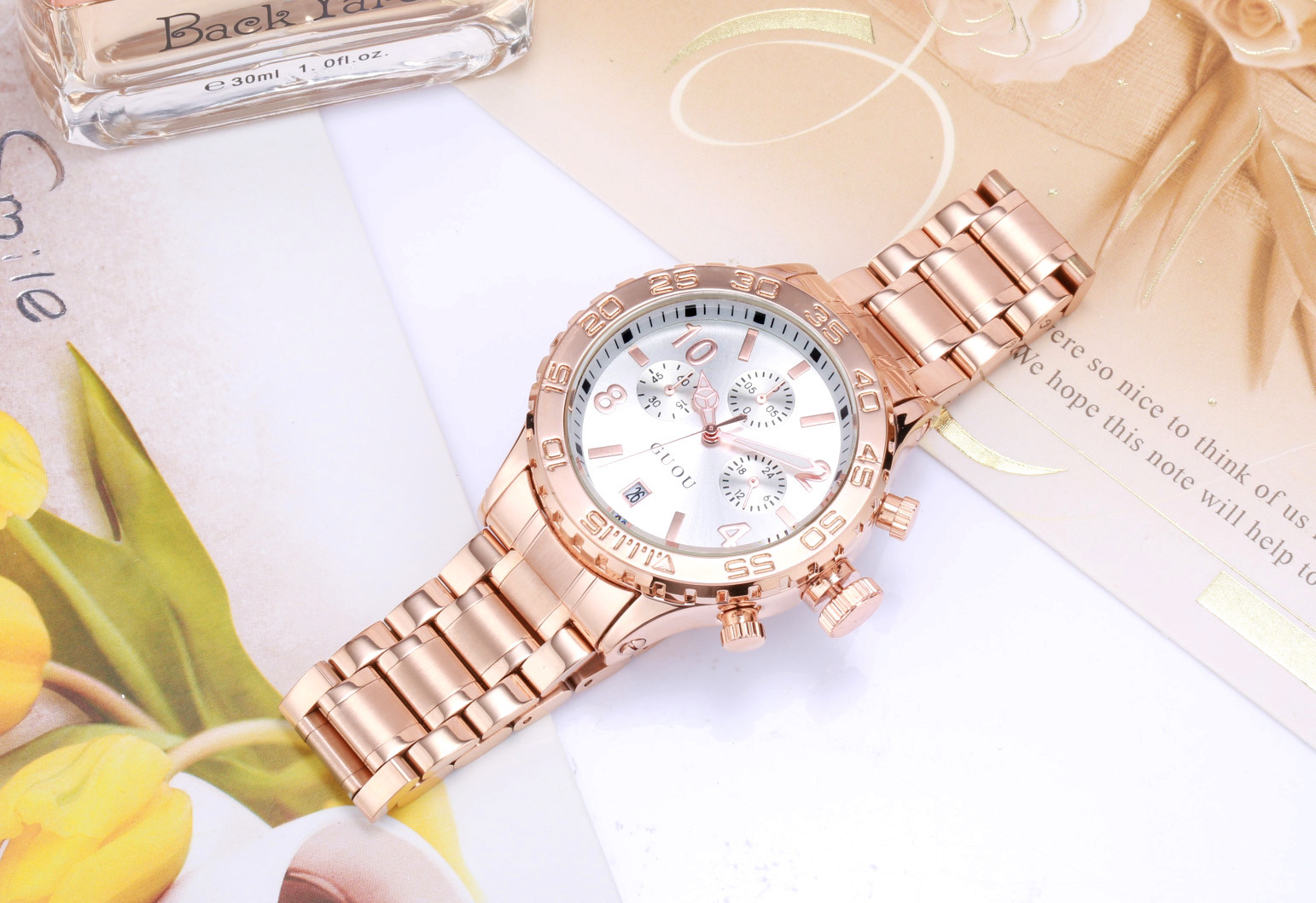 Cổ Châu Âu GUOU xu hướng thời trang đồng hồ thạch anh mặt lớn đồng hồ nữ phiên bản Hàn Quốc chống nước thời trang Hàn Quốc dây thép nữ