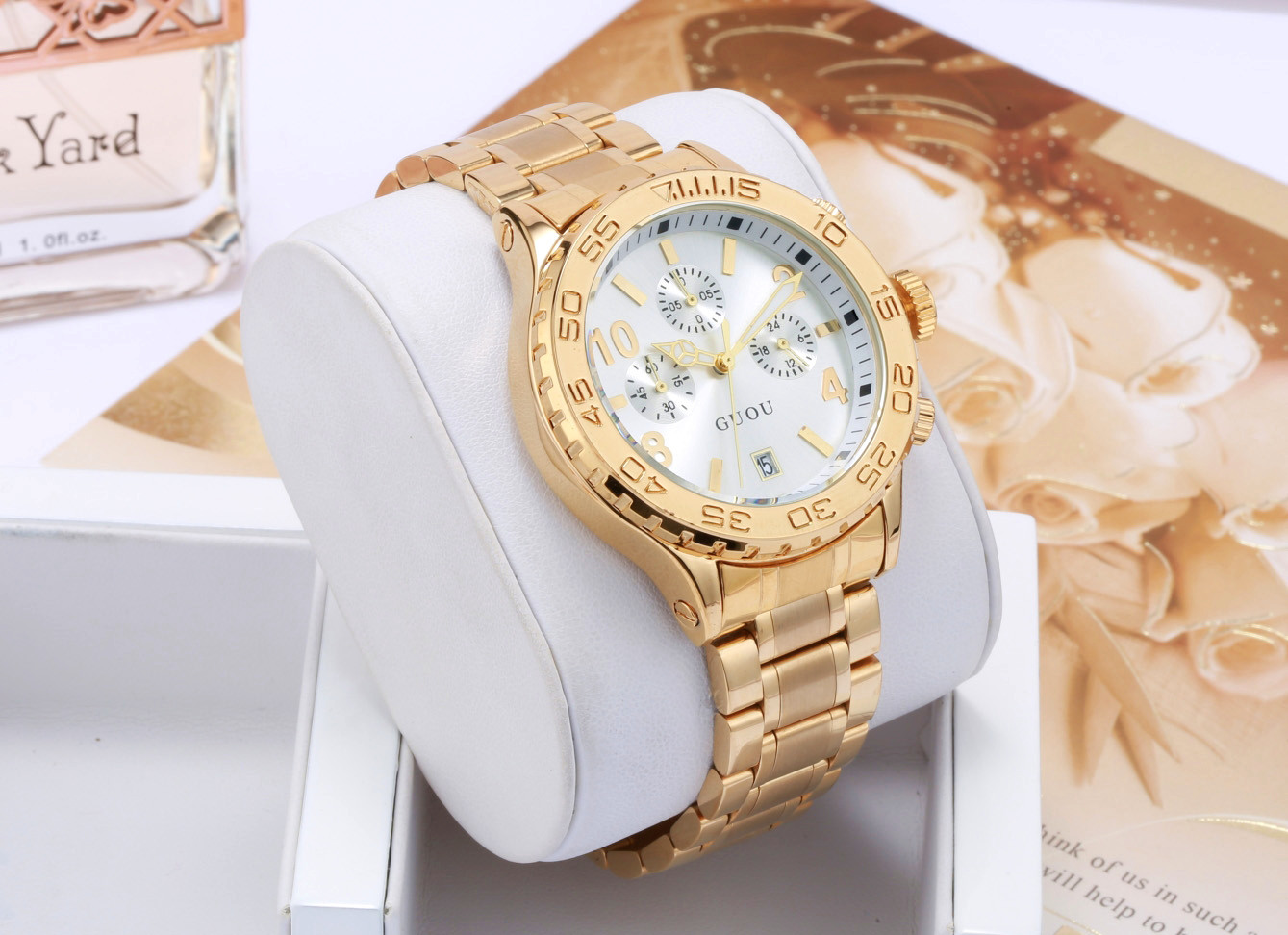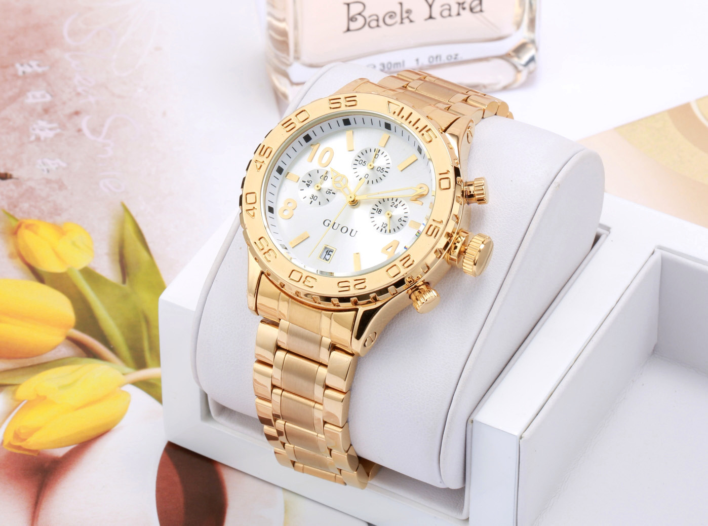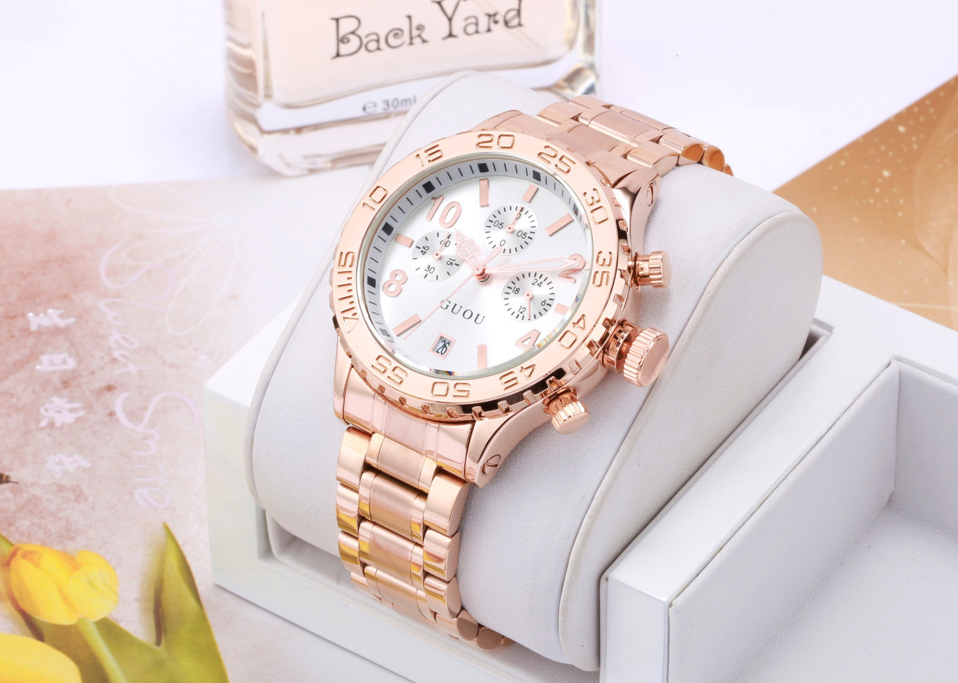 Cổ Châu Âu GUOU xu hướng thời trang đồng hồ thạch anh mặt lớn đồng hồ nữ phiên bản Hàn Quốc chống nước thời trang Hàn Quốc dây thép nữ