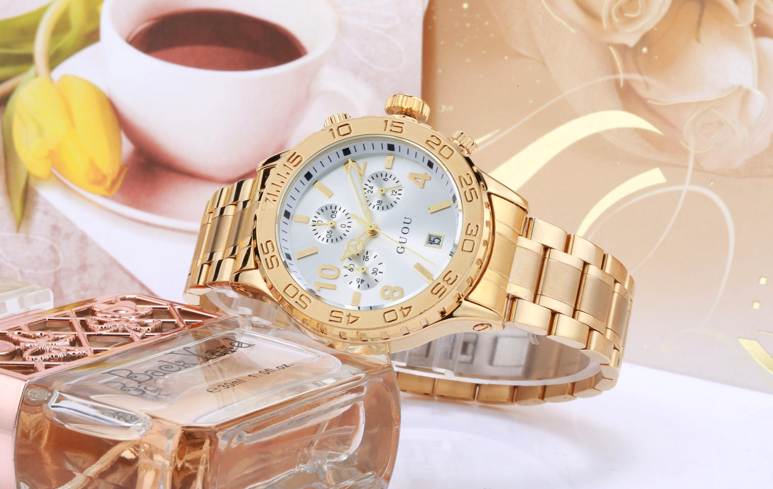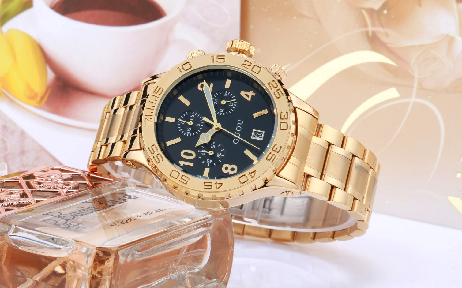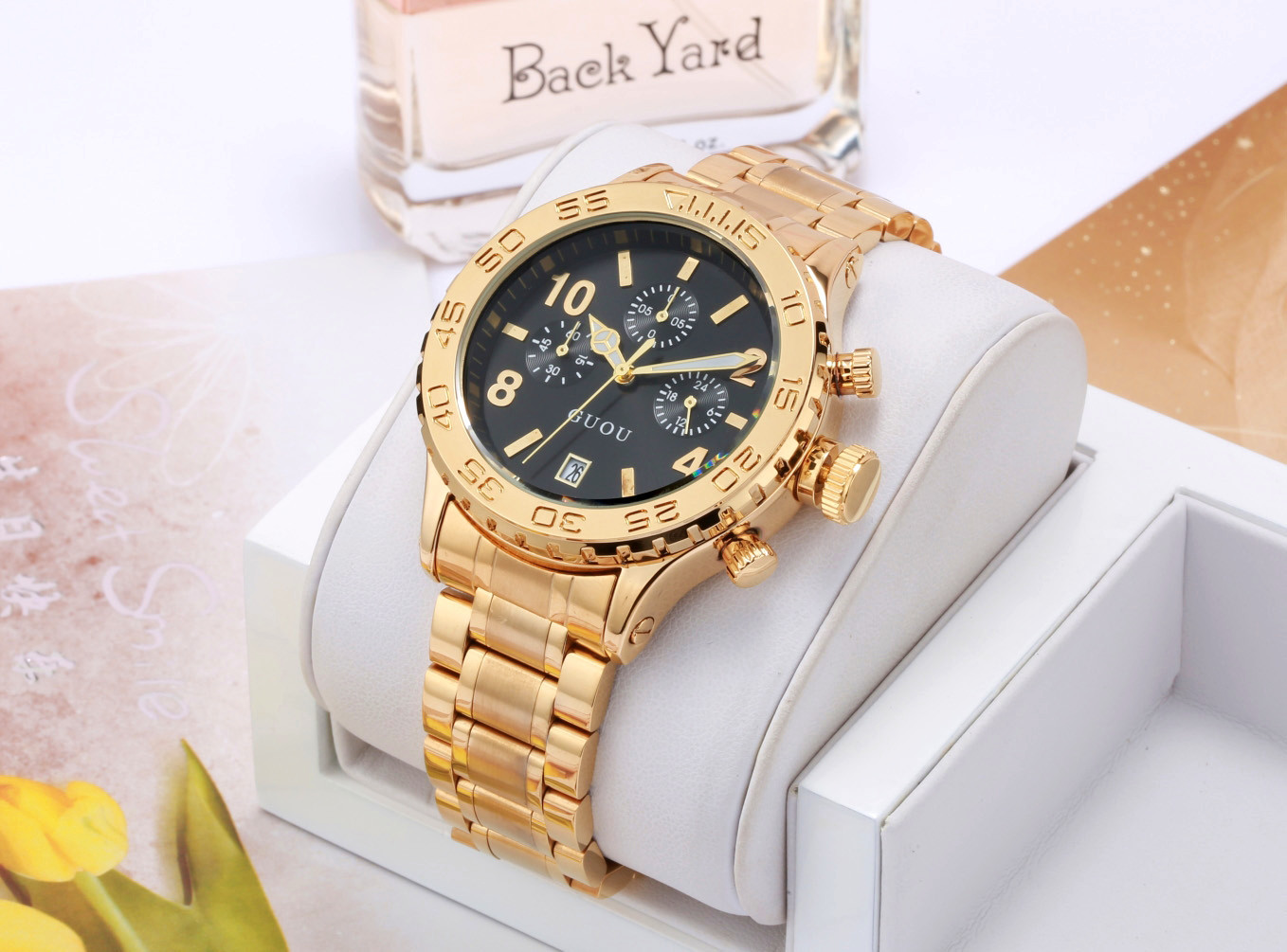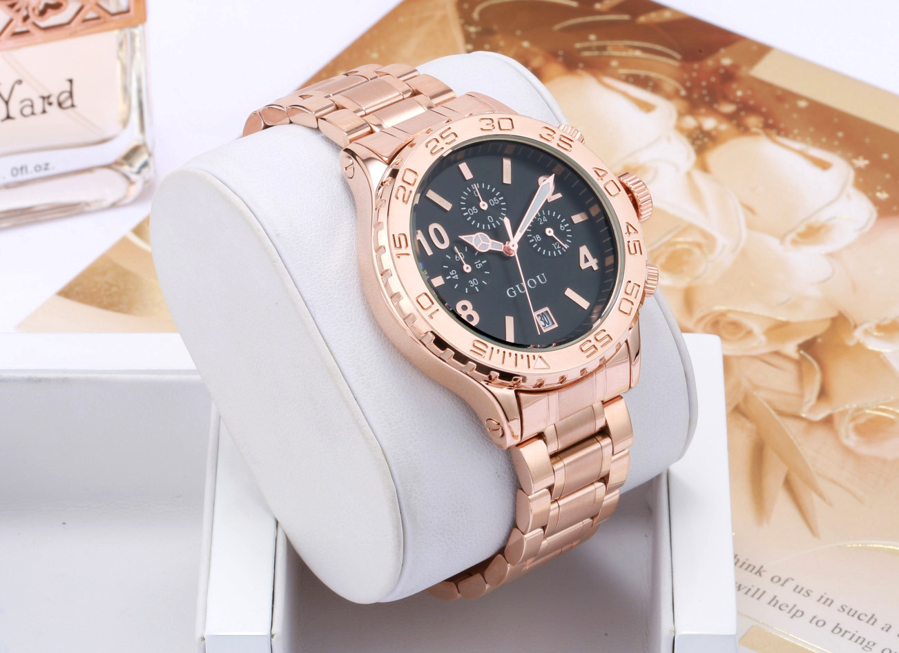 Cổ Châu Âu GUOU xu hướng thời trang đồng hồ thạch anh mặt lớn đồng hồ nữ phiên bản Hàn Quốc chống nước thời trang Hàn Quốc dây thép nữ