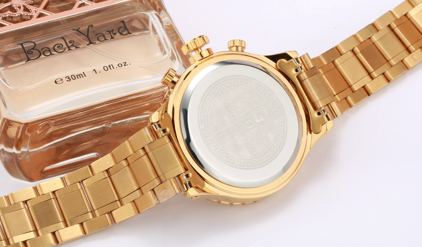 Cổ Châu Âu GUOU xu hướng thời trang đồng hồ thạch anh mặt lớn đồng hồ nữ phiên bản Hàn Quốc chống nước thời trang Hàn Quốc dây thép nữ