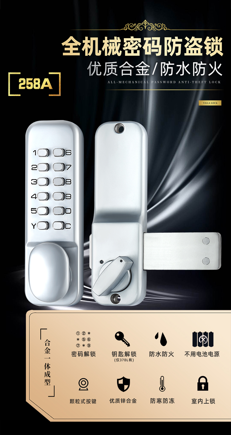 Có chìa khóa mật mã khóa tủ chức năng thường mở cầu gãy khóa cửa cạnh nhôm-nhựa-thép-kính khóa điện tử chốt chéo Kent