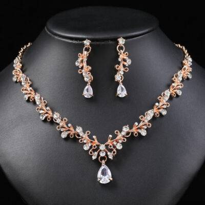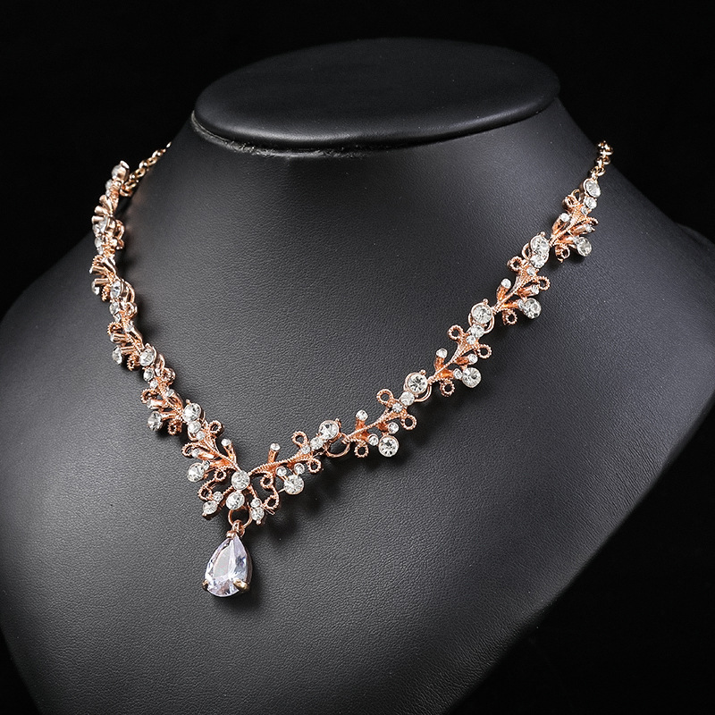 Cô Dâu Hàn Quốc Cưới Bộ Bông Tai Vòng Cổ Nữ Kẹp Zircon Series Pha Lê Kim Cương Xương Đòn Dây Chuyền Dạ Hội Phụ Kiện