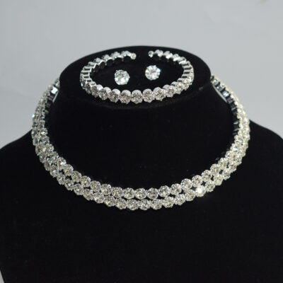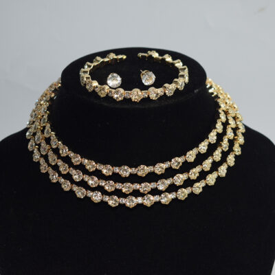 Cô Dâu Trang Sức 1/2/3 Hàng Vàng Bạc Cổ Vòng Tay Bông Tai 2 Bộ Đá Móng Vuốt Dây Chuyền bộ Trang Sức Vòng Cổ Bộ