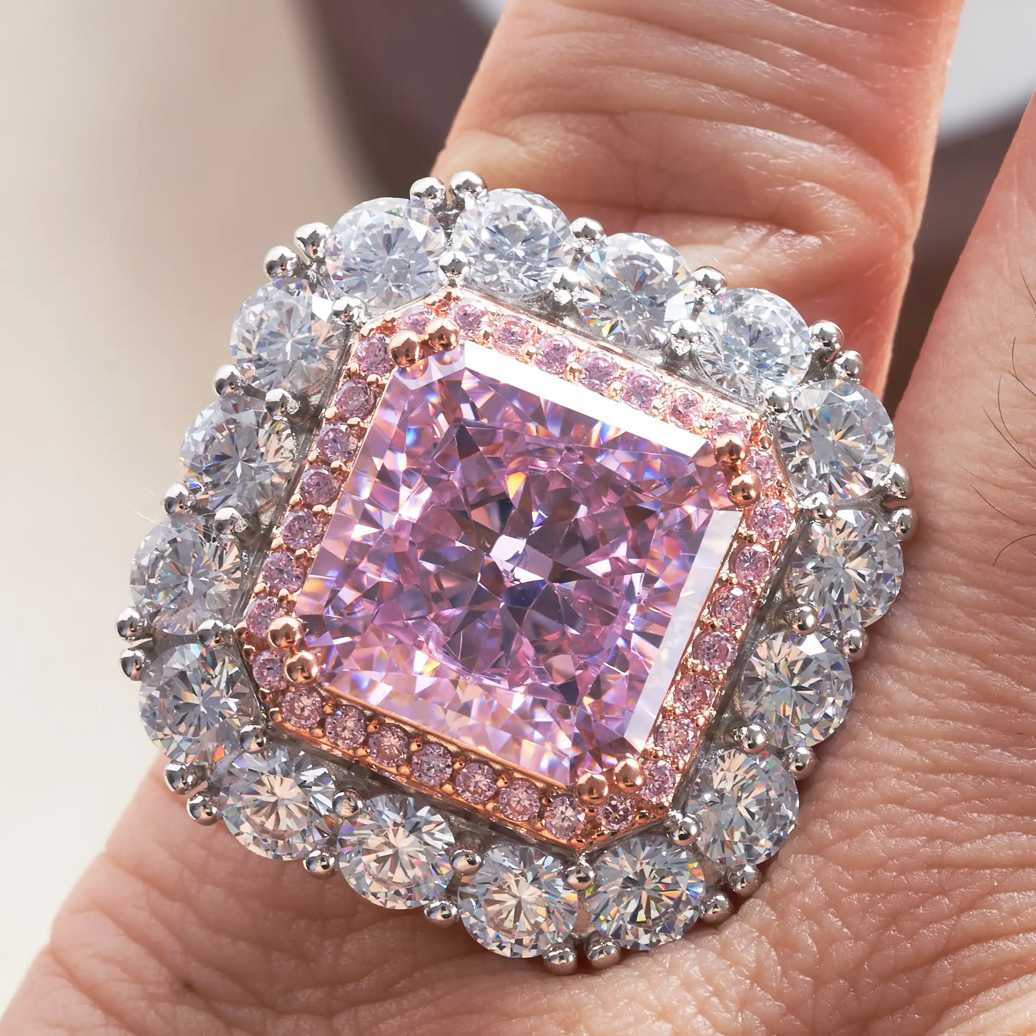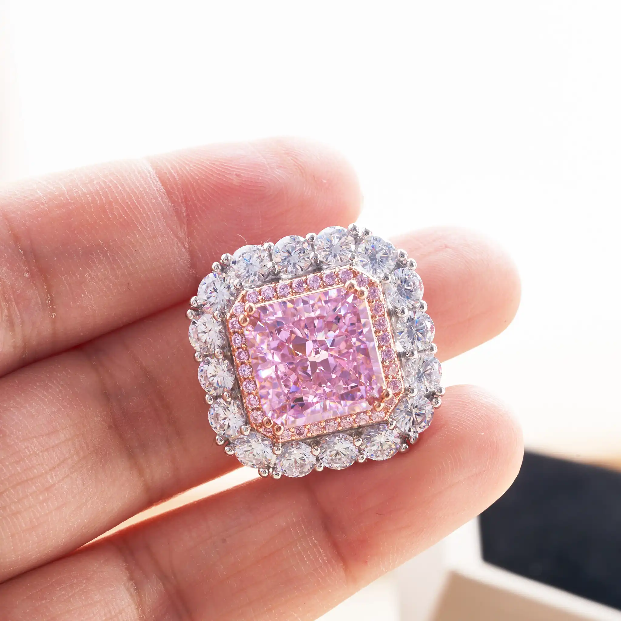 Classic 925 Sterling Silver Radiant Cut 10CT VVS1 Pink Lab diamond Wedding Engagement Customized Ring Fine Jewelry us size 5-9