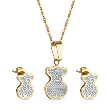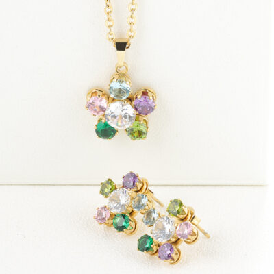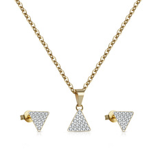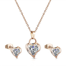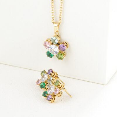 Cổ Điển Đa Năng Nhiều Màu Zircon Bộ Trang Sức Bông Tai Thép Titan + Vòng Cổ Inox Nữ Đá Quý Vòng Cổ Bán Buôn