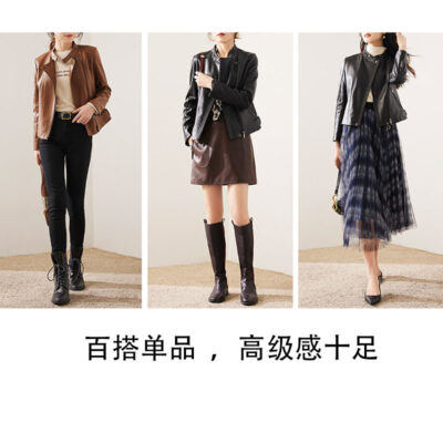 Cổ điển mặc mười ngàn năm da cừu áo khoác ngắn nữ áo khoác da thật xe máy da nữ phong cách mùa xuân mới