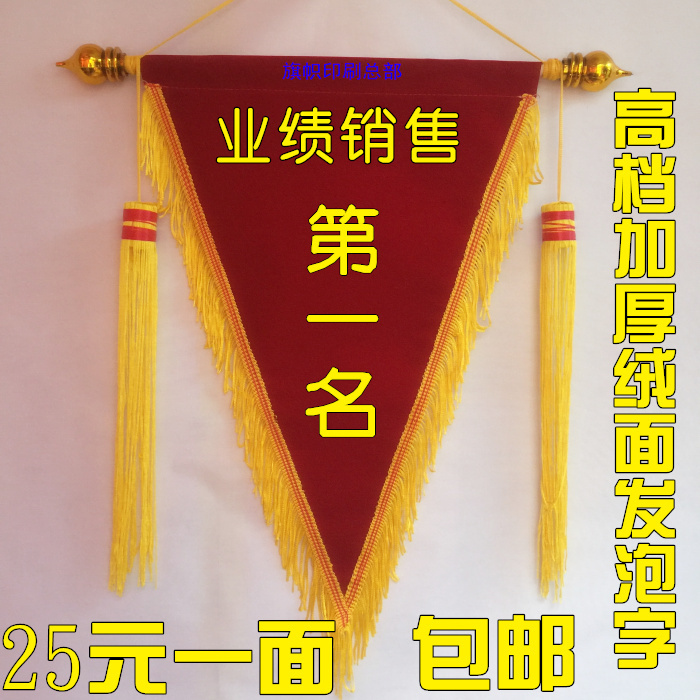 特点:市场上较多绒布锦旗,但料好坏相差甚远,这款使用高档加厚的绒布制作 ,更显高档, 厚重,上档次!!