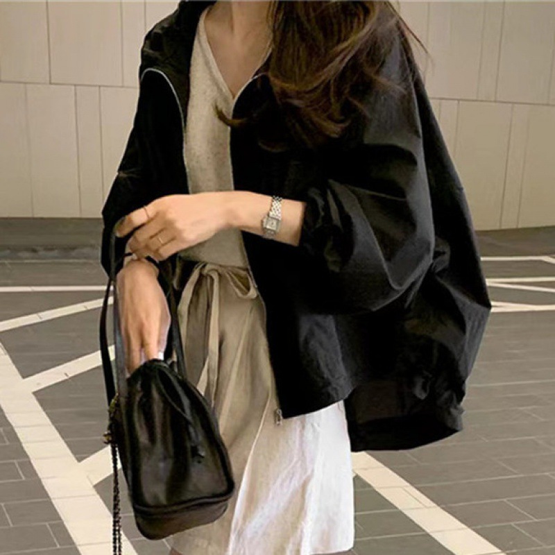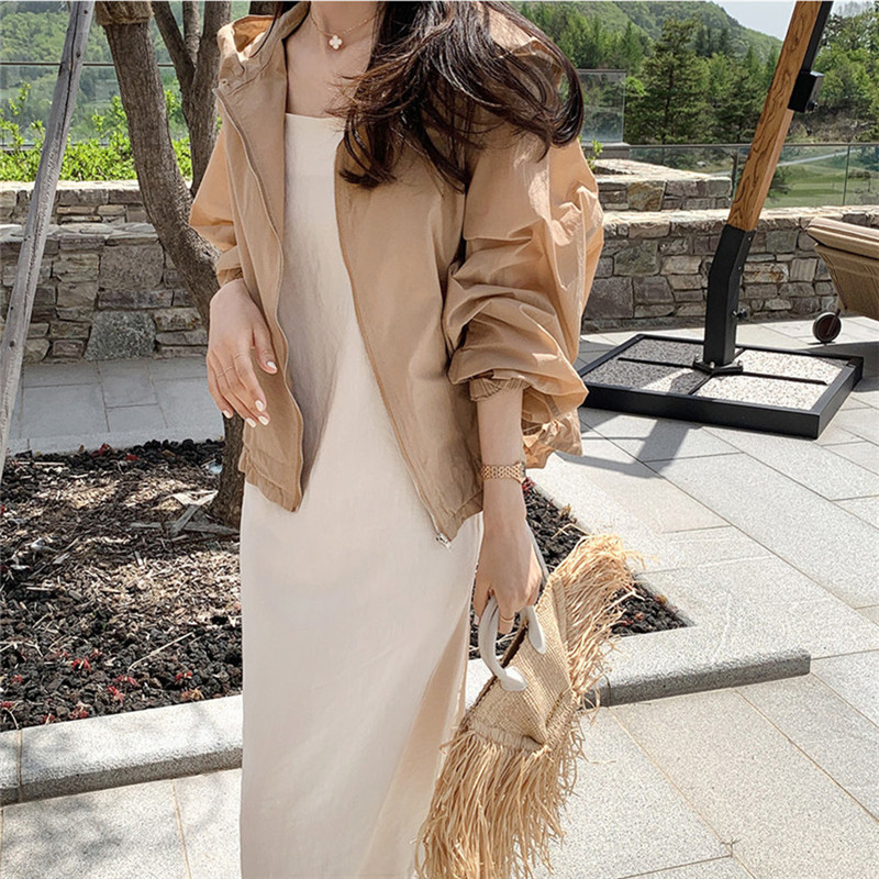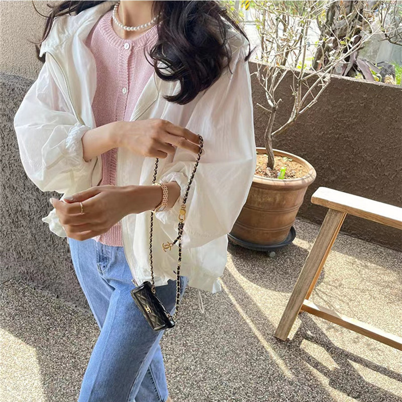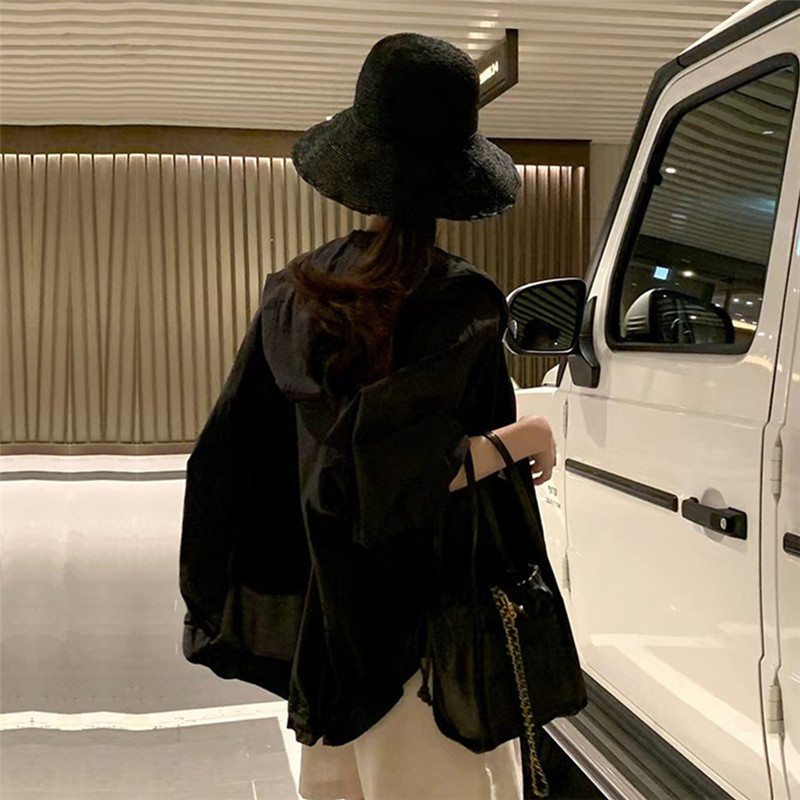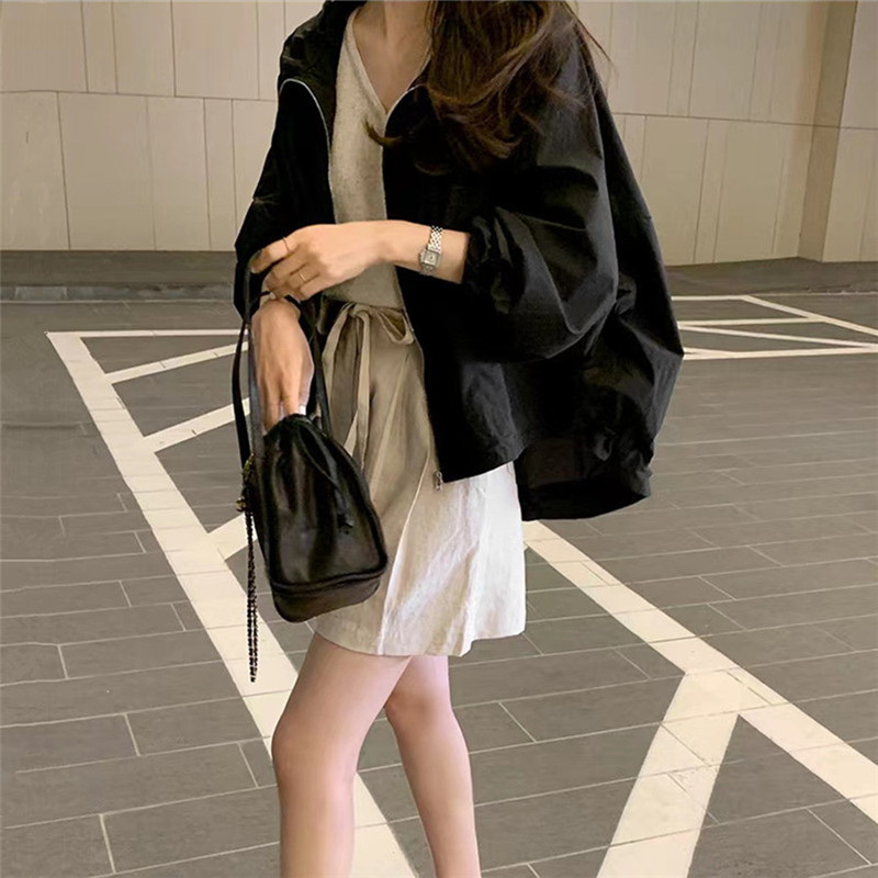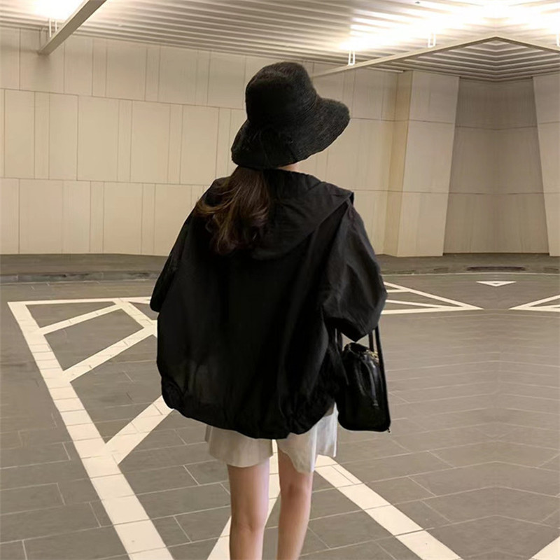 Cổ đứng khớp đúng với có mũ trùm đầu áo khoác chống nắng hàng đầu 2023 mới dây rút nhỏ thắt lưng điều hòa áo khoác nữ