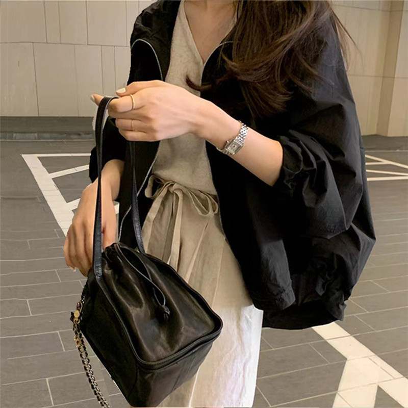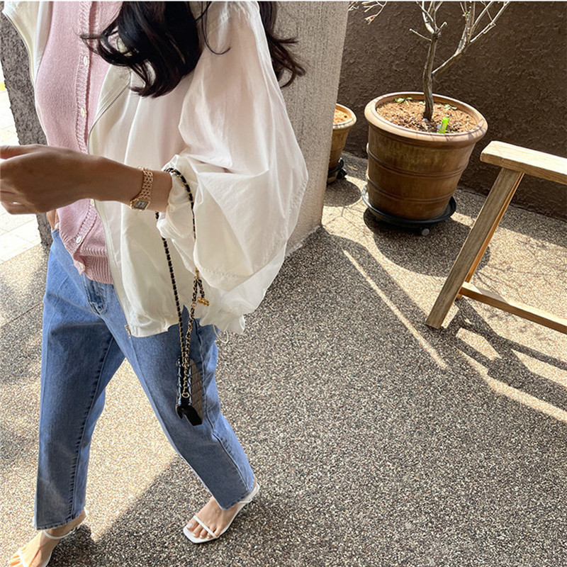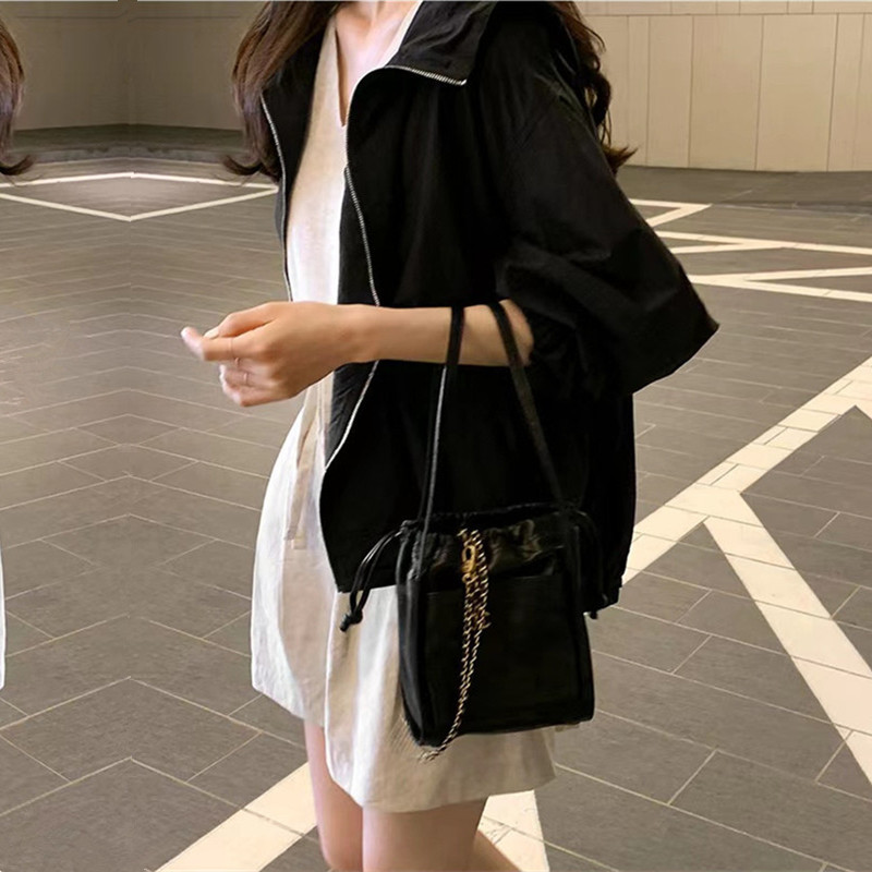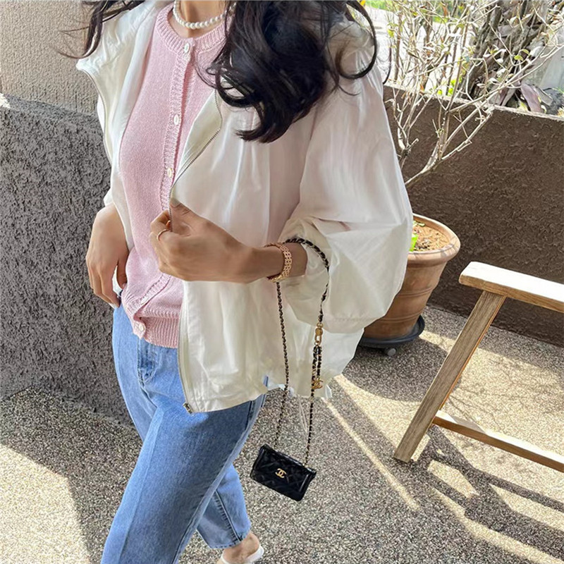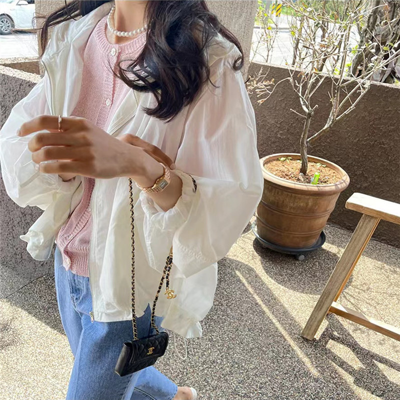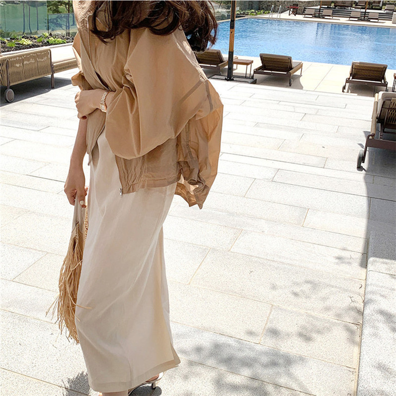 Cổ đứng khớp đúng với có mũ trùm đầu áo khoác chống nắng hàng đầu 2023 mới dây rút nhỏ thắt lưng điều hòa áo khoác nữ