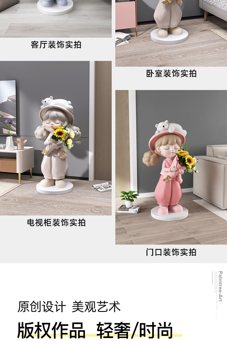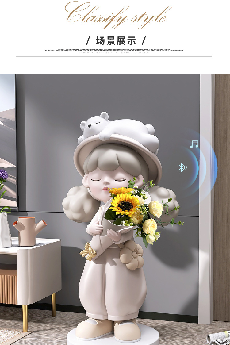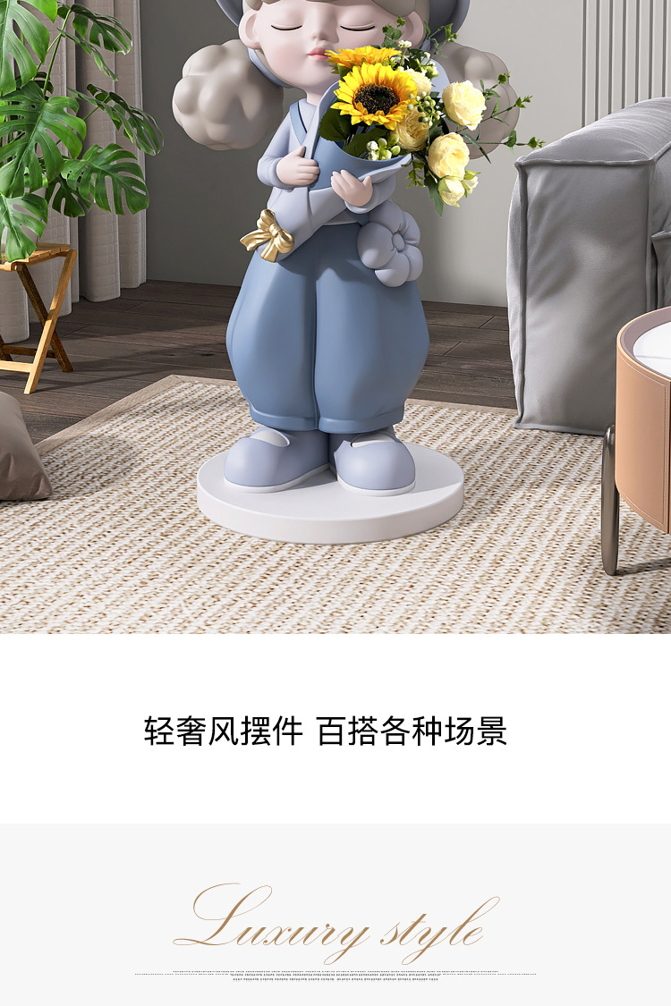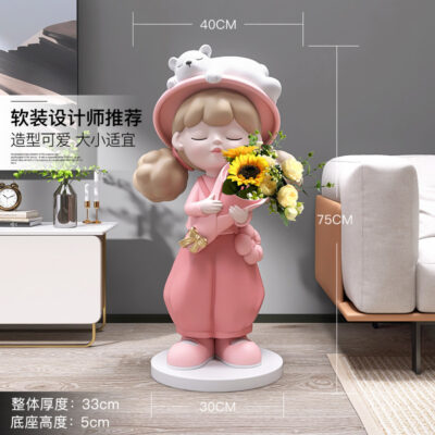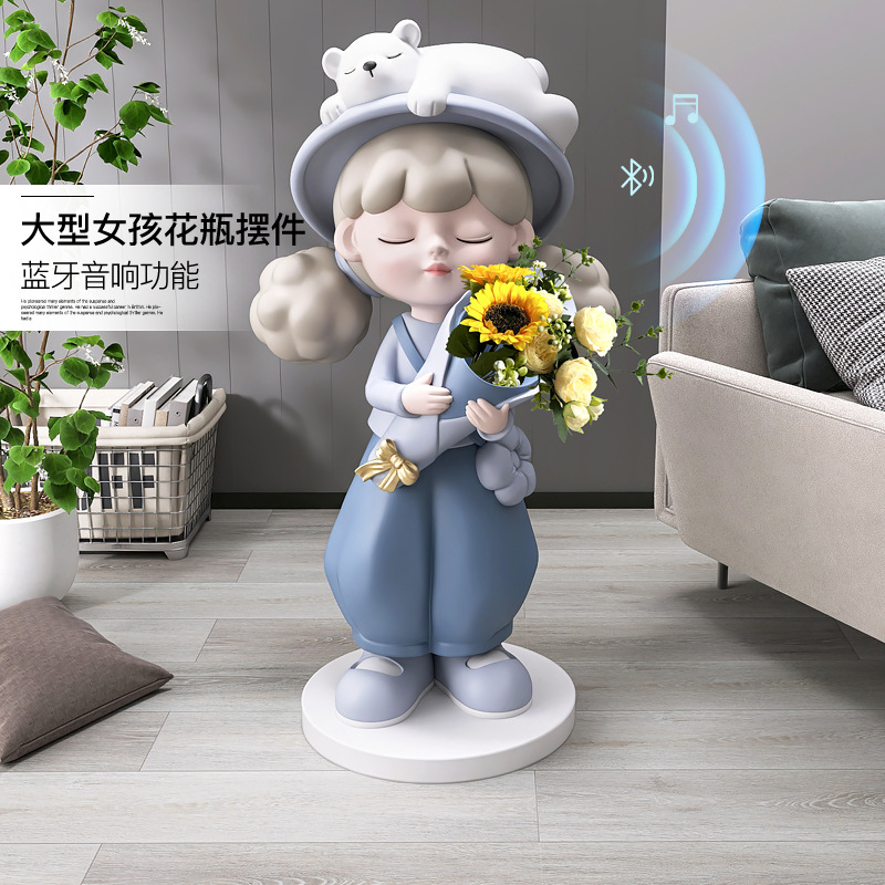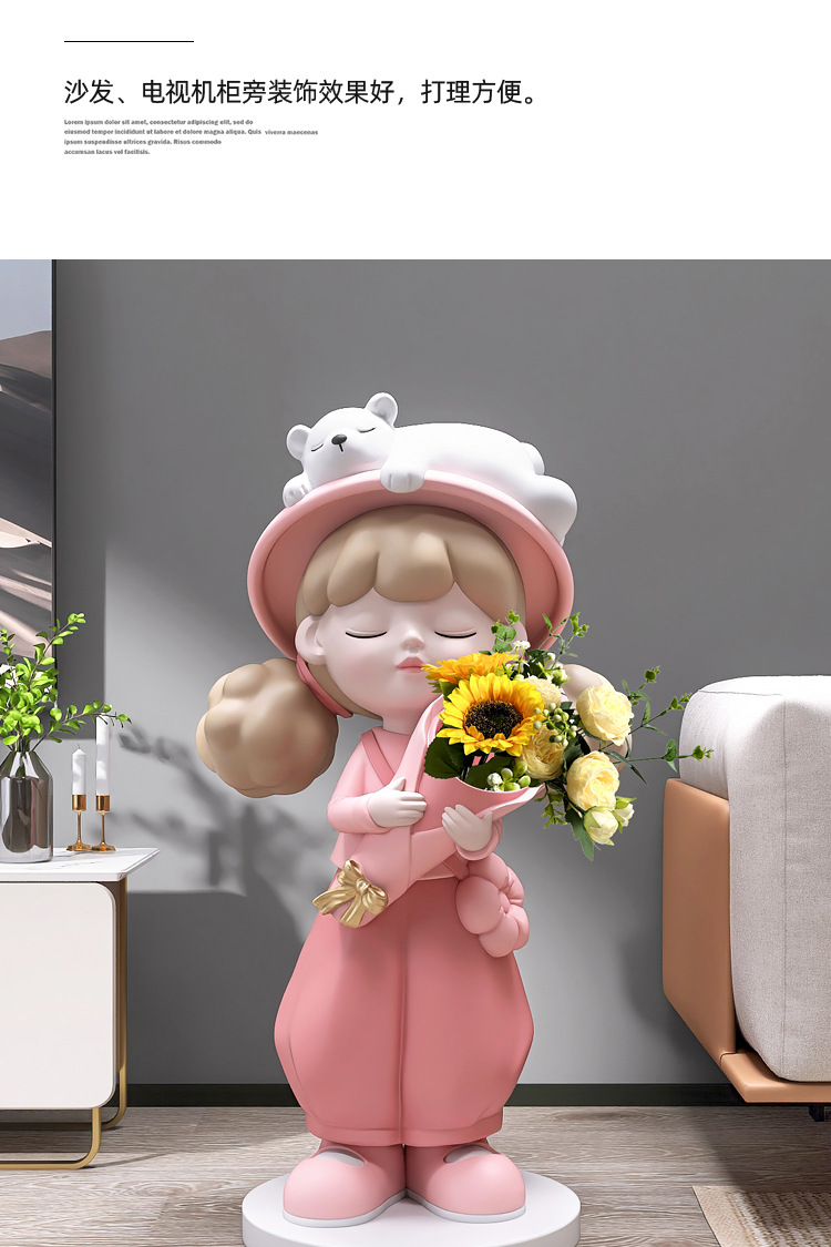 Cô gái lớn từ sàn đến trần bình hoa trang trí phụ kiện nhà TV phòng khách tủ sofa bên cạnh tác phẩm điêu khắc mở món quà tân gia