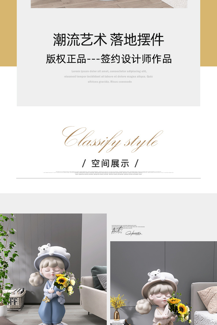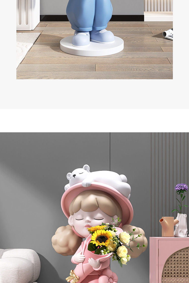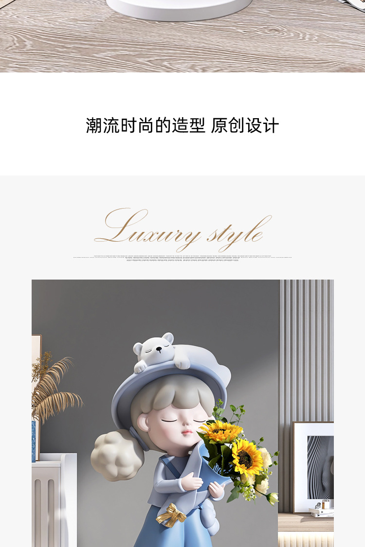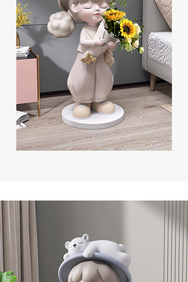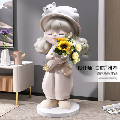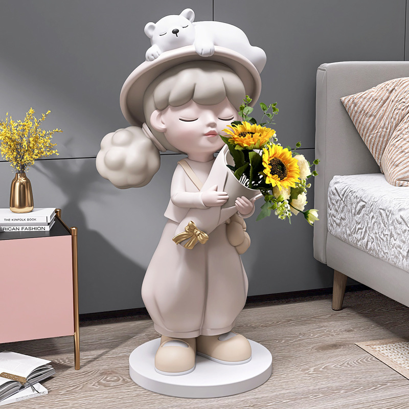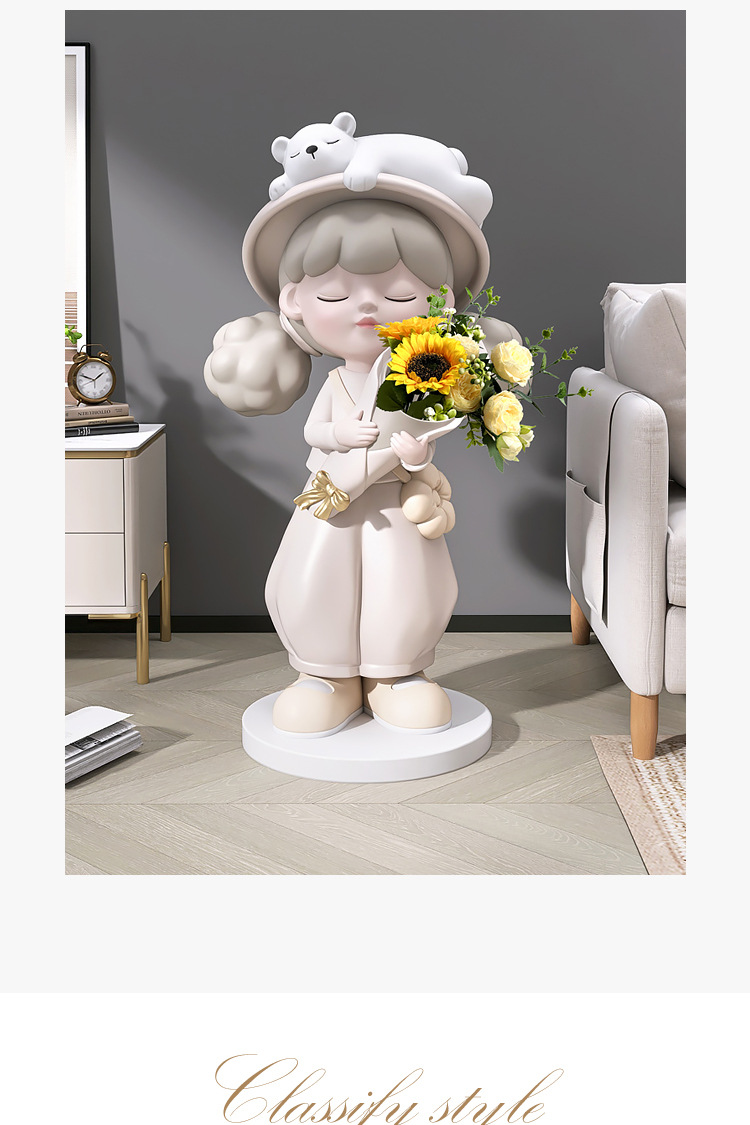 Cô gái lớn từ sàn đến trần bình hoa trang trí phụ kiện nhà TV phòng khách tủ sofa bên cạnh tác phẩm điêu khắc mở món quà tân gia