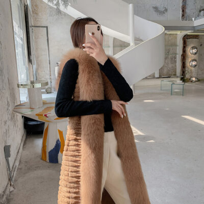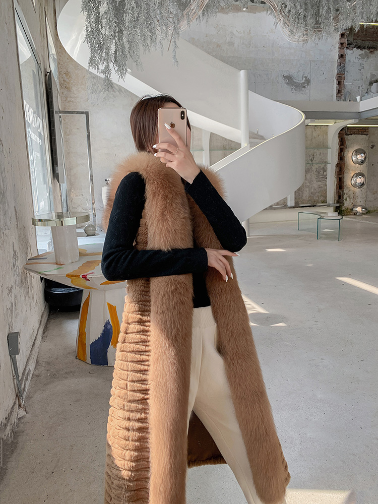 4、脱掉獭兔毛内胆,单穿獭兔毛马甲