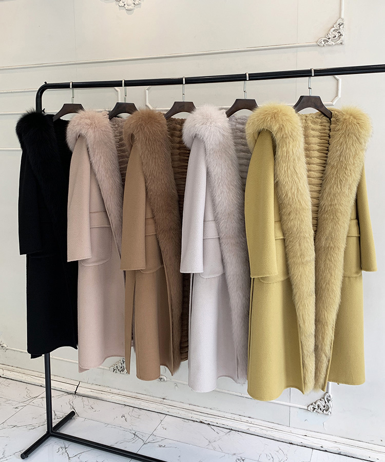 1、双面呢+獭兔毛内胆,双面呢穿外面,獭兔毛穿里面