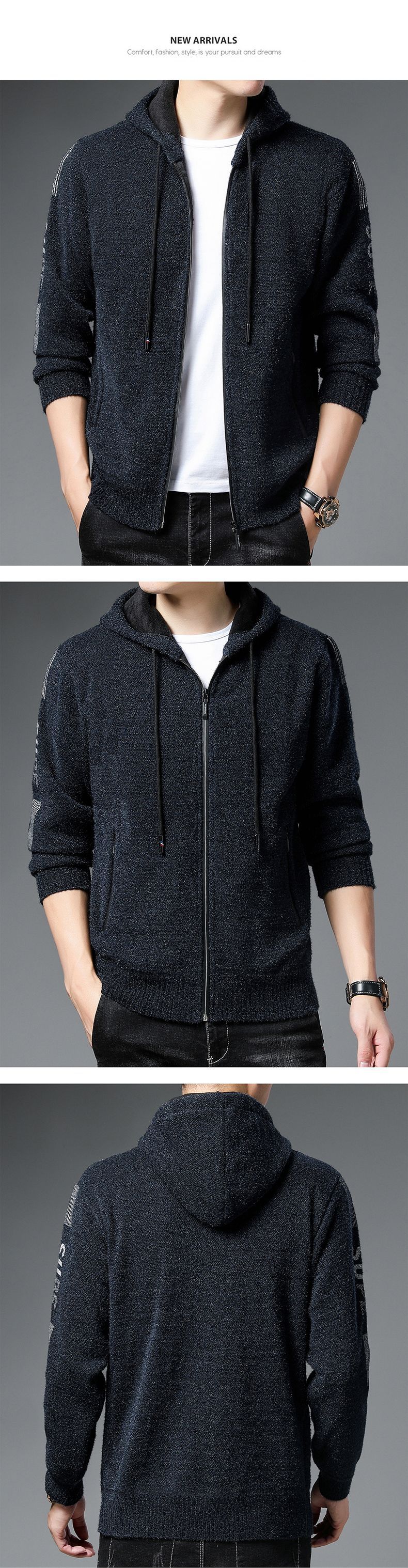 Có Mũ Trùm Đầu Dày Áo Len Dệt Kim Áo Khoác Mùa Thu Đông 2022 Mới Trung Niên Và Trẻ Trung Màu Nguyên Chất Chồn Áo Dệt Kim
