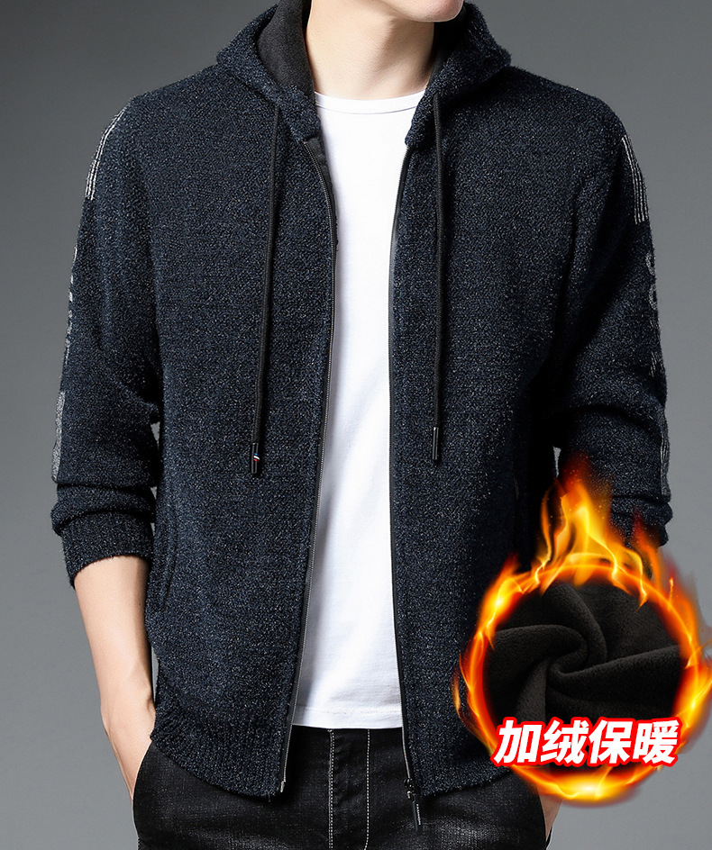 Có Mũ Trùm Đầu Dày Áo Len Dệt Kim Áo Khoác Mùa Thu Đông 2022 Mới Trung Niên Và Trẻ Trung Màu Nguyên Chất Chồn Áo Dệt Kim
