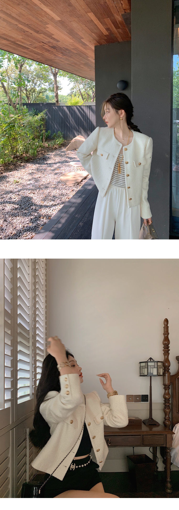 Cổ Tròn Áo Khoác Len Mùa Thu Size Lớn Nhỏ Len Nữ Ngắn Phong Cách Chiên Đường Tính Khí Top Một Bán Buôn AliExpress