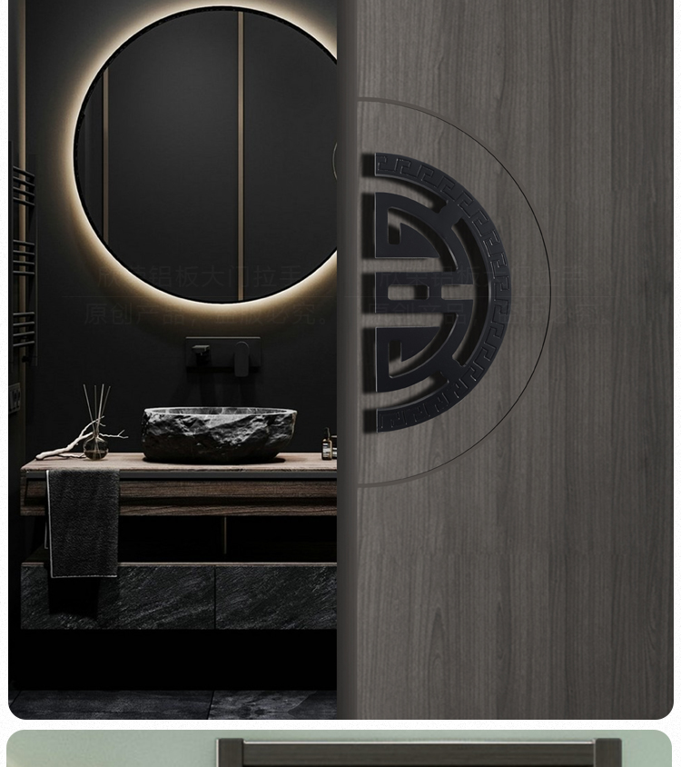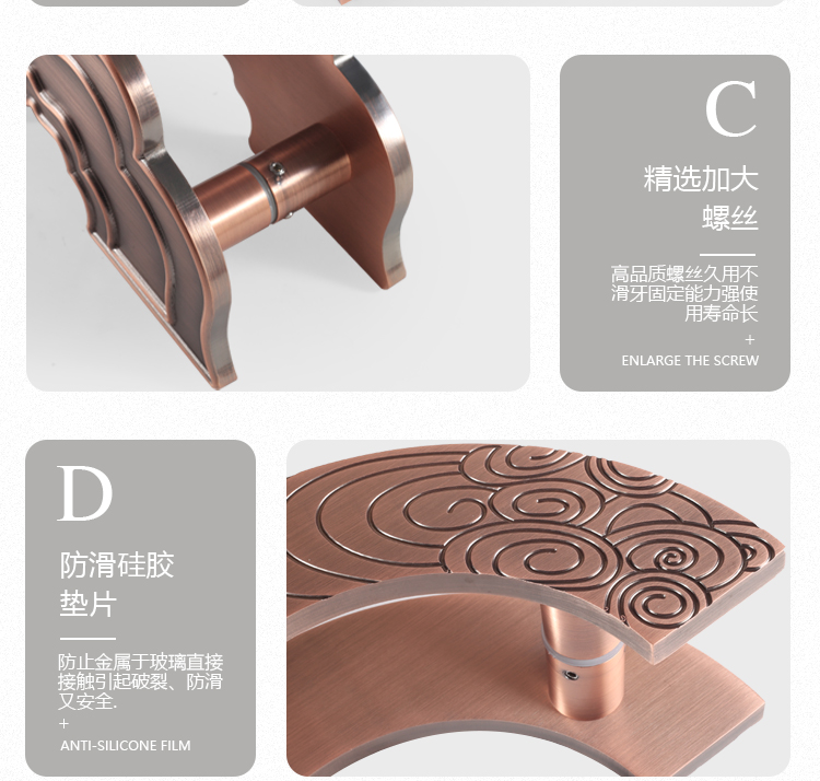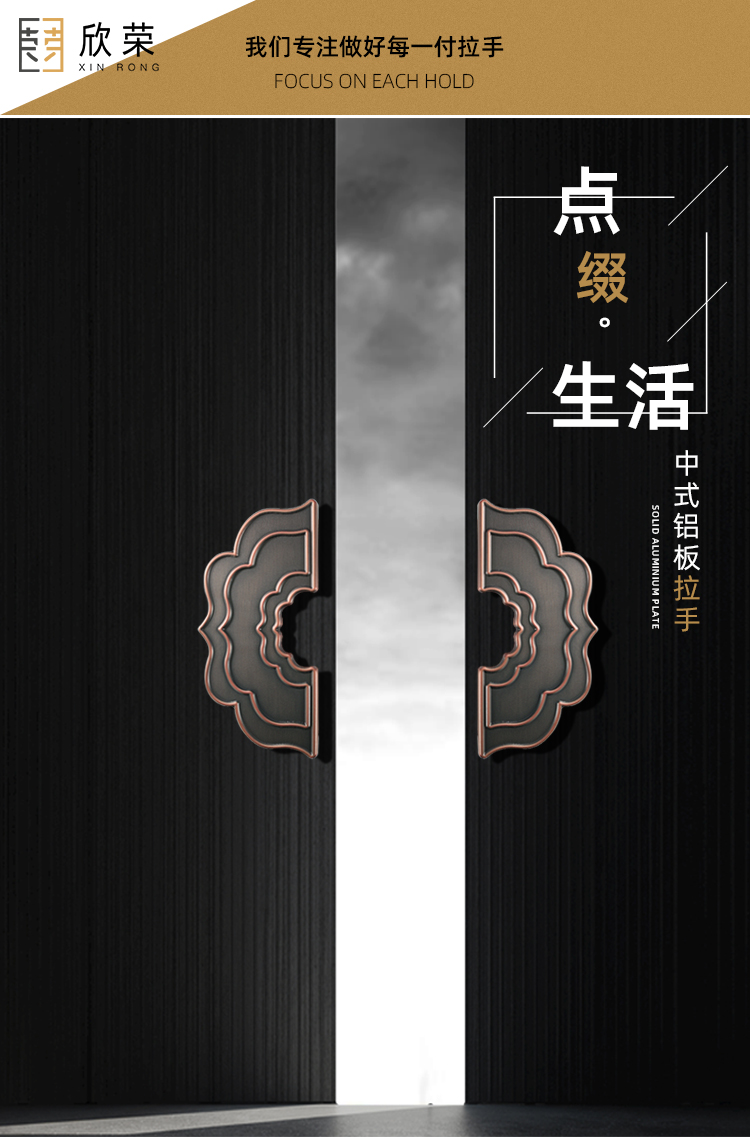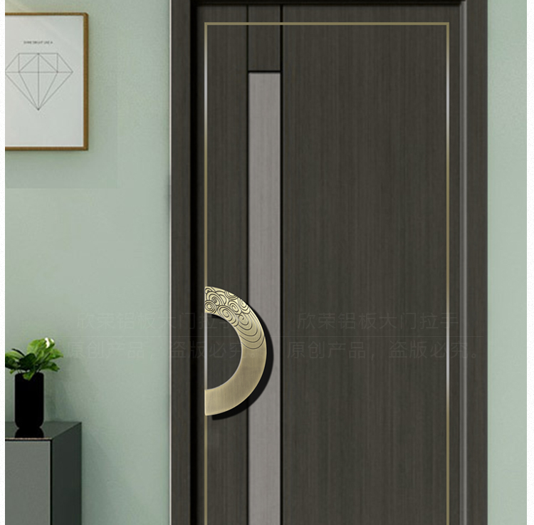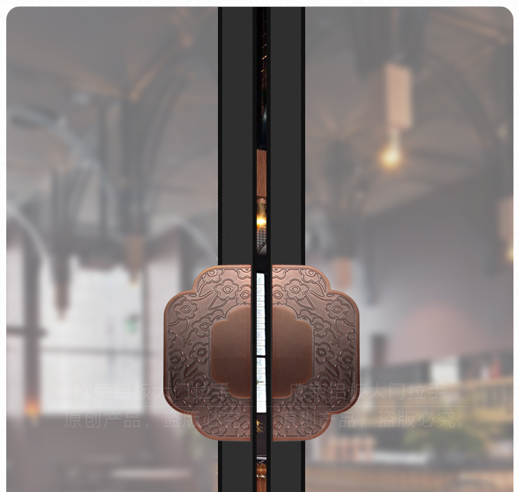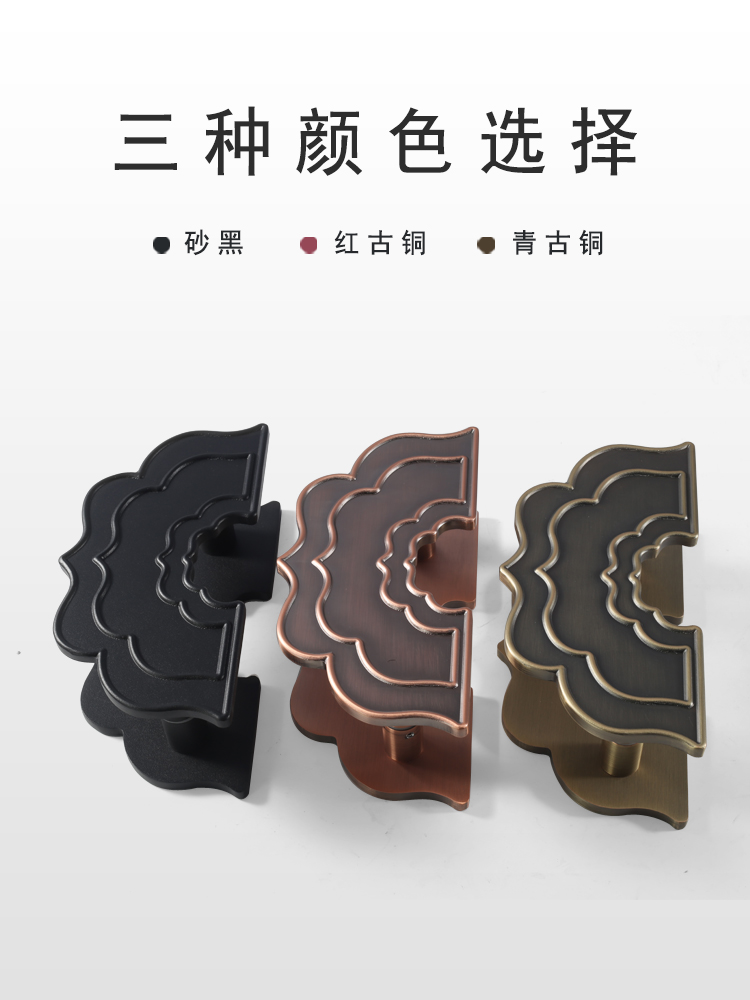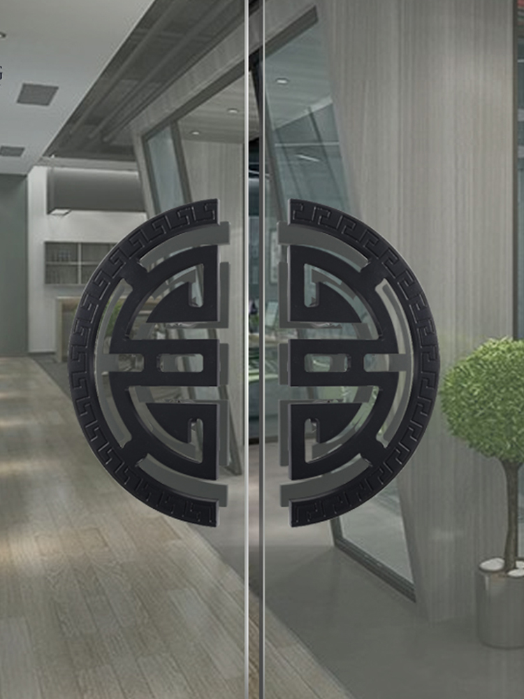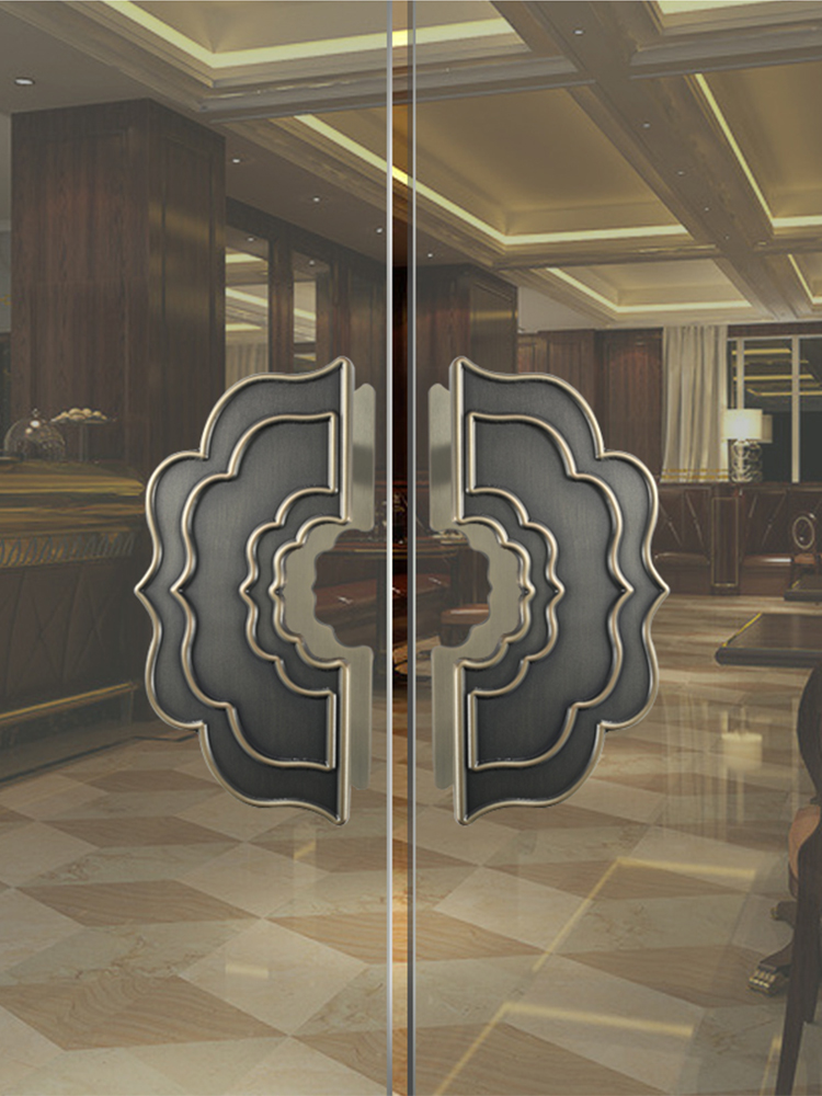 Cổ Xiangyun chạm khắc tay nắm cửa kính không khung phong cách Trung Quốc mới hình bán nguyệt khách sạn phòng riêng tay nắm cửa trượt