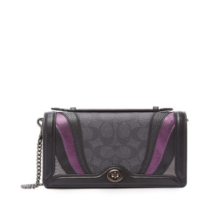 COACH / Coach 19 Mùa thu và mùa đông Đen chiến đấu Da tím sọc ngang Túi đeo chéo