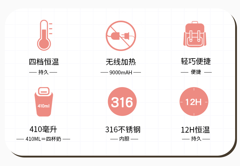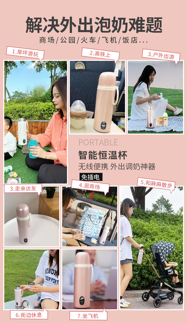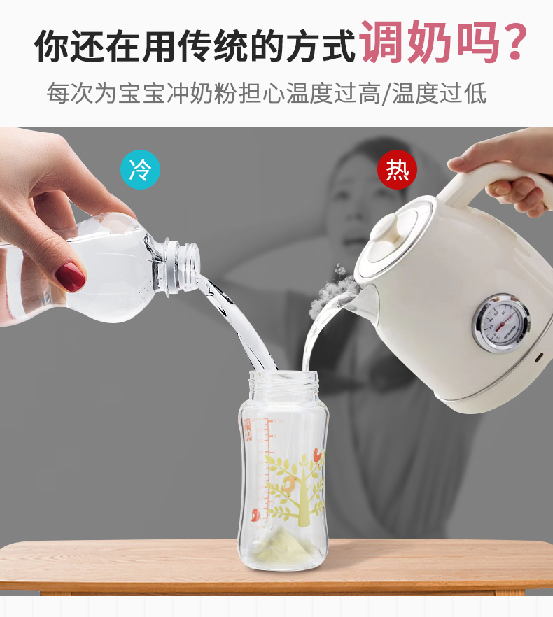 Cốc giữ nhiệt không đổi nhiệt độ 45 độ em bé đi ra ngoài bình đun dung tích lớn di động cốc nước nhiệt độ không đổi tạo bọt sữa để pha sữa bột