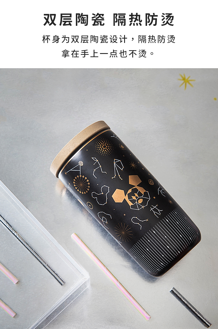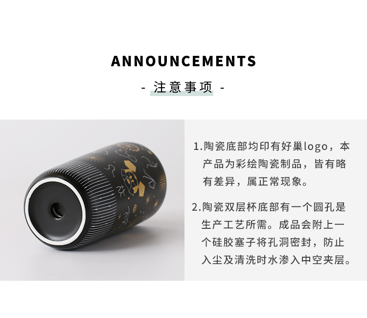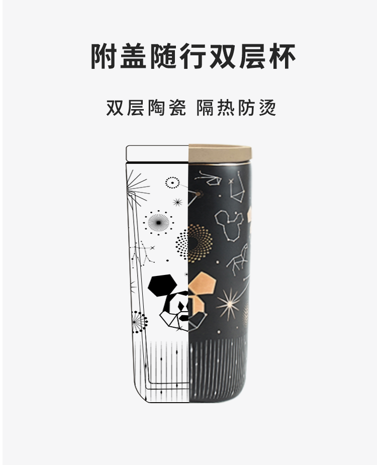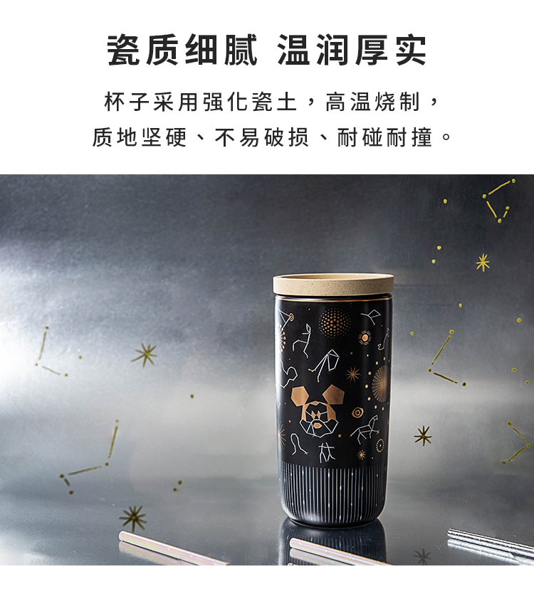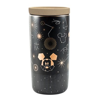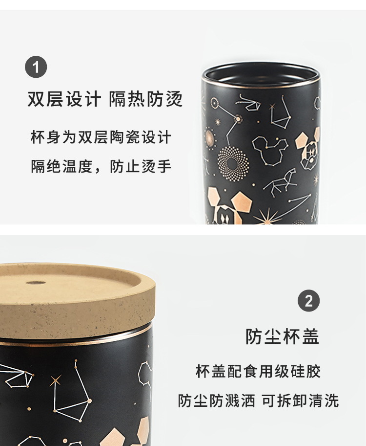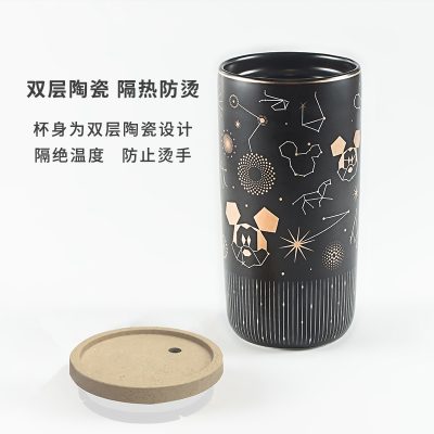 Cốc nước gốm sứ hai lớp dành cho trẻ em, có nắp cốc.