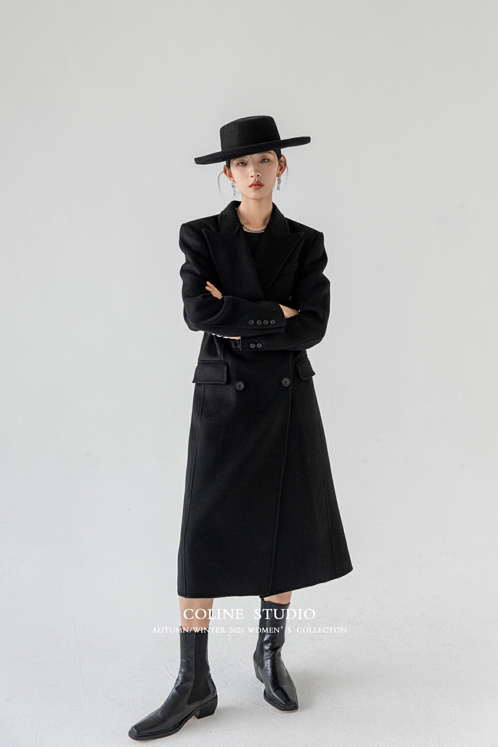 COLINE 2 mặt áo khoác len nữ UUS dài trung bình APM phù hợp với cổ áo thắt lưng cashmere mỏng phù hợp với áo khoác C10271