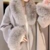 COLINE 2 mặt áo khoác len nữ UUS dài trung bình APM phù hợp với cổ áo thắt lưng cashmere mỏng phù hợp với áo khoác C10271