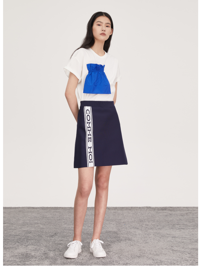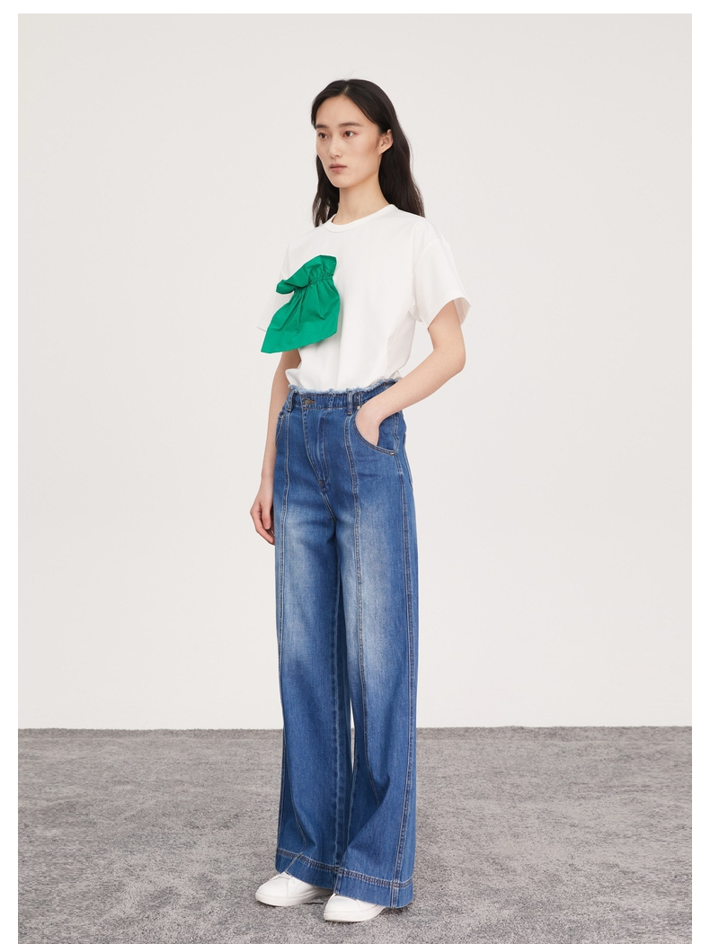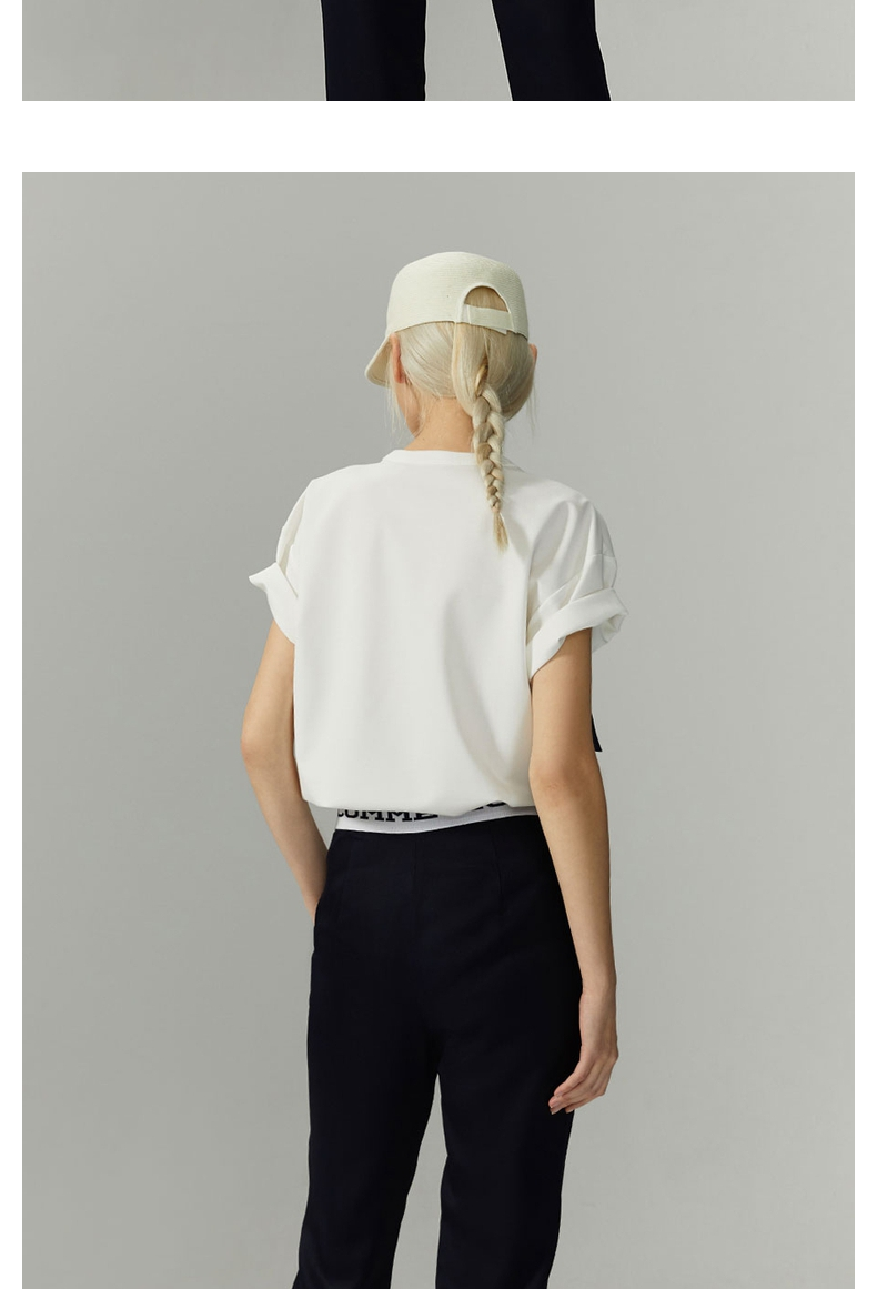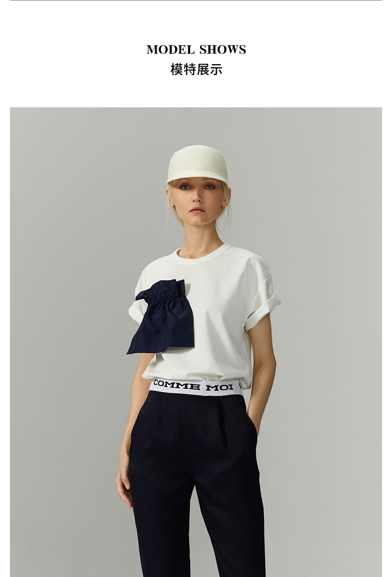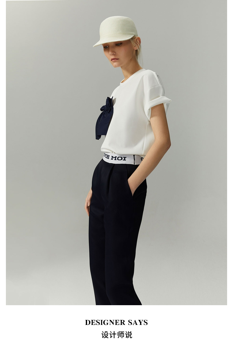 COMME MOI Lu Yan nhà thiết kế thời trang ren mới của phụ nữ trang trí màu tương phản màu sắc đơn giản đi làm áo phông ngắn tay