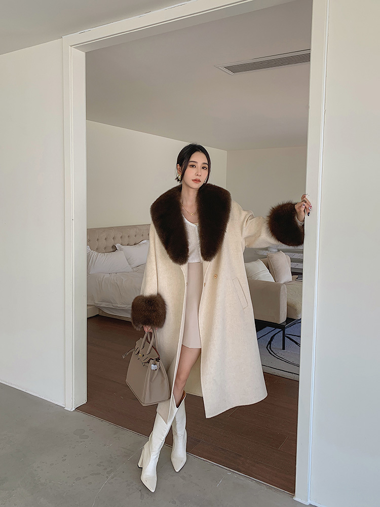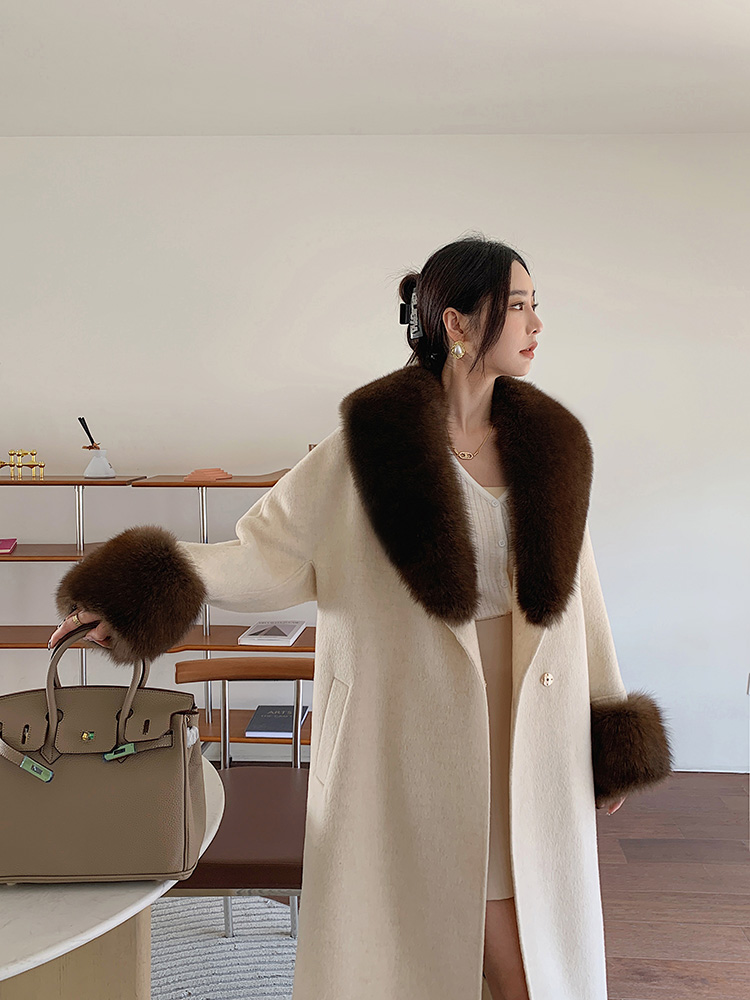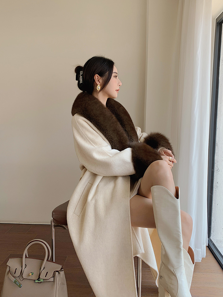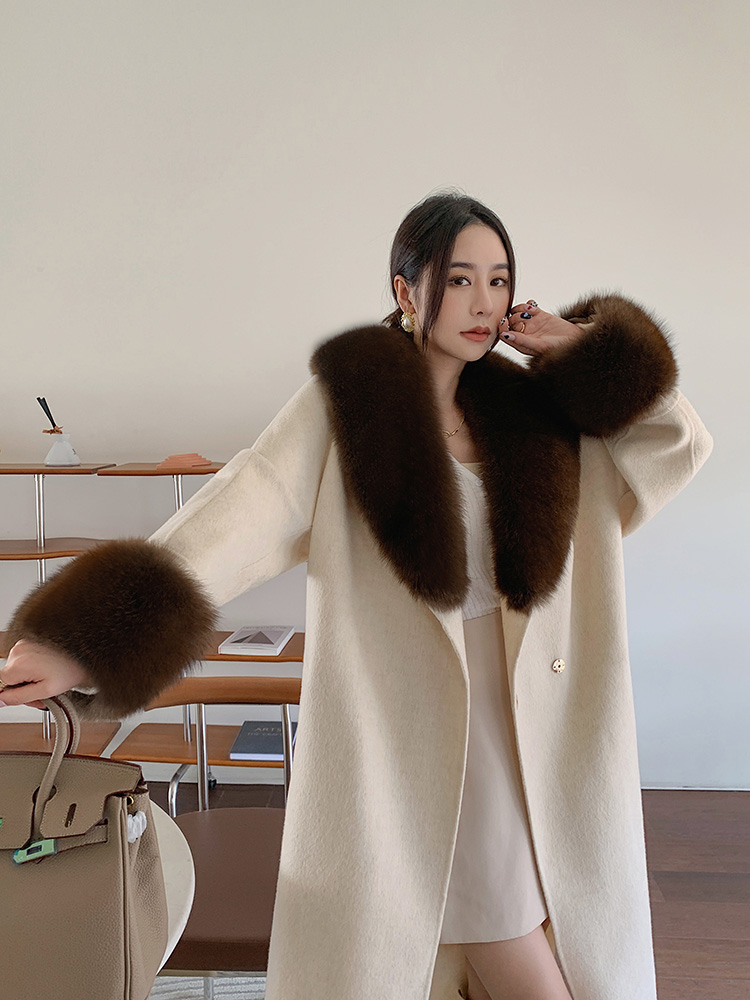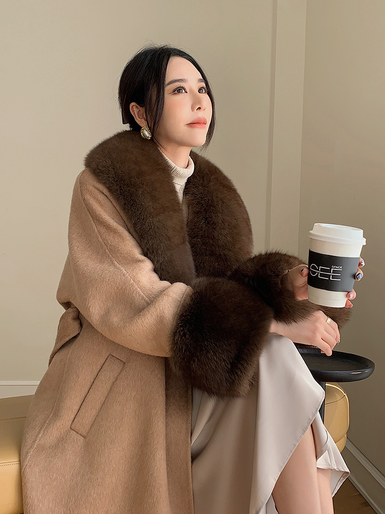 Con Cáo Cổ Lông Alpaca Alpaca 2 Mặt Áo Khoác Cashmere Nữ Trung Chiều Dài Hồ Sơ Áo Choàng Tắm Áo Khoác Len Nữ