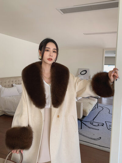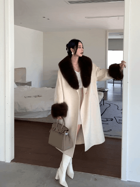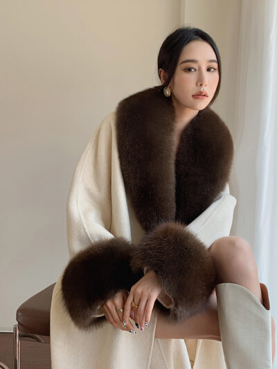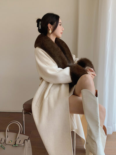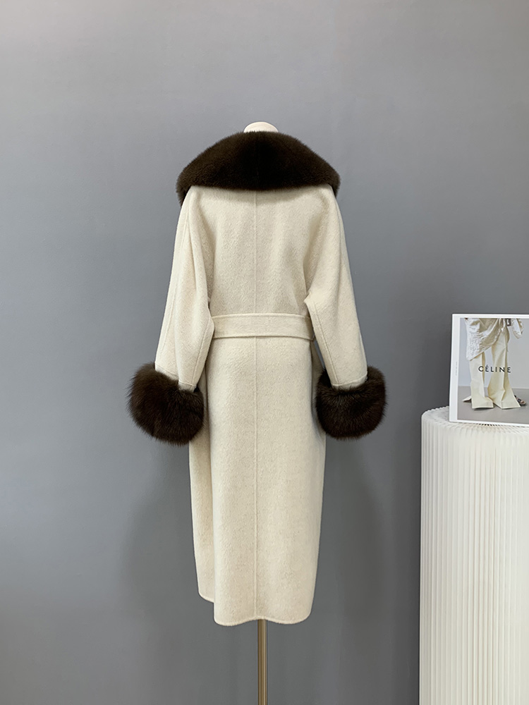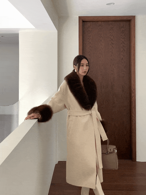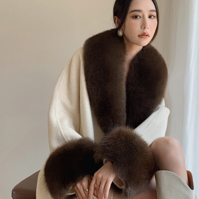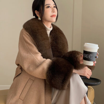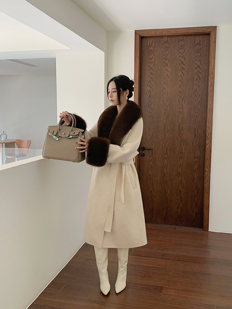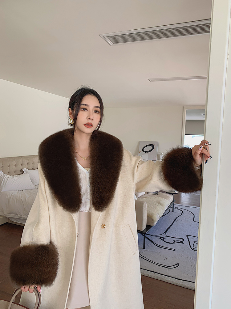Con Cáo Cổ Lông Alpaca Alpaca 2 Mặt Áo Khoác Cashmere Nữ Trung Chiều Dài Hồ Sơ Áo Choàng Tắm Áo Khoác Len Nữ