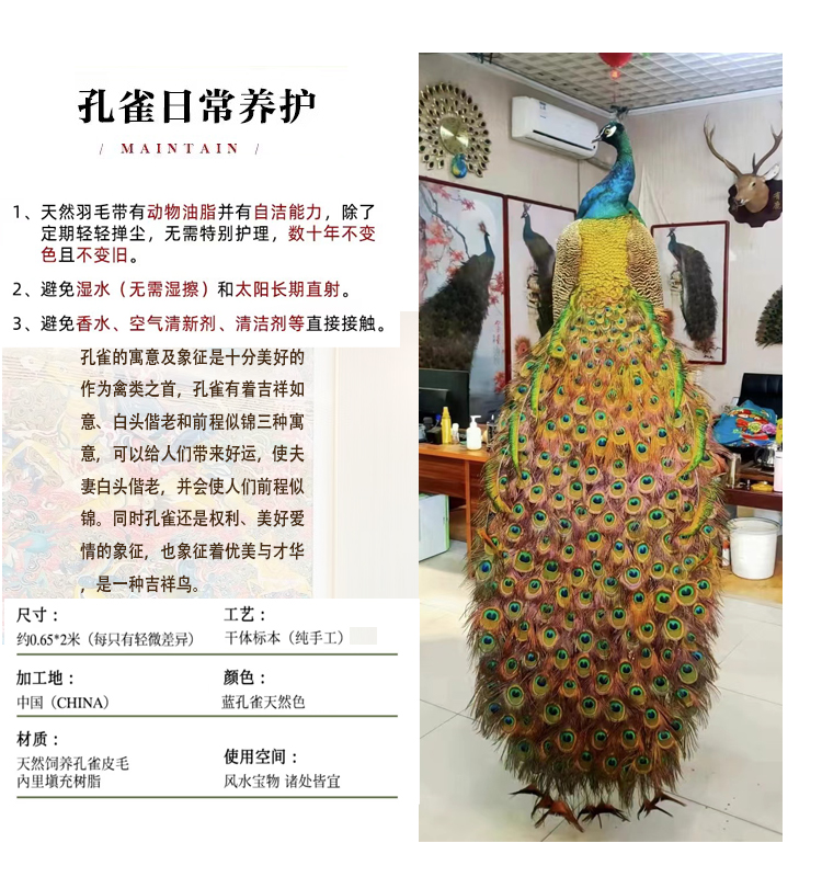 Con công tự nhiên mẫu vật thật lông vũ trang trí sàn hiện đại phòng khách trang trí khách sạn trang trí nhà thủ công quà tặng đạo cụ