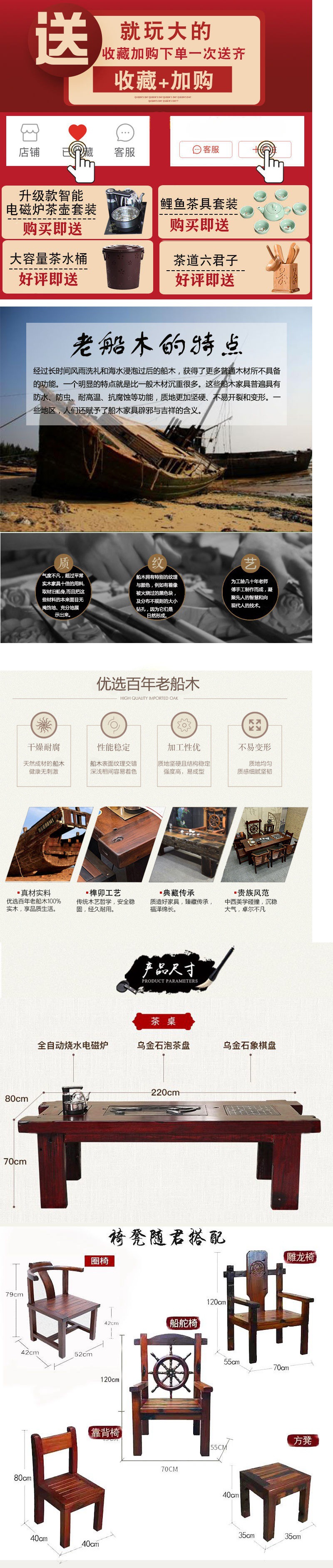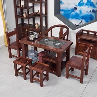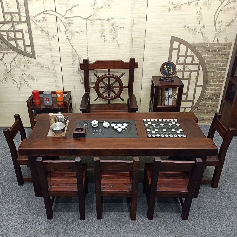陈年老船实木茶几茶台桌椅组合套装新中式实木简约办公室家用茶台